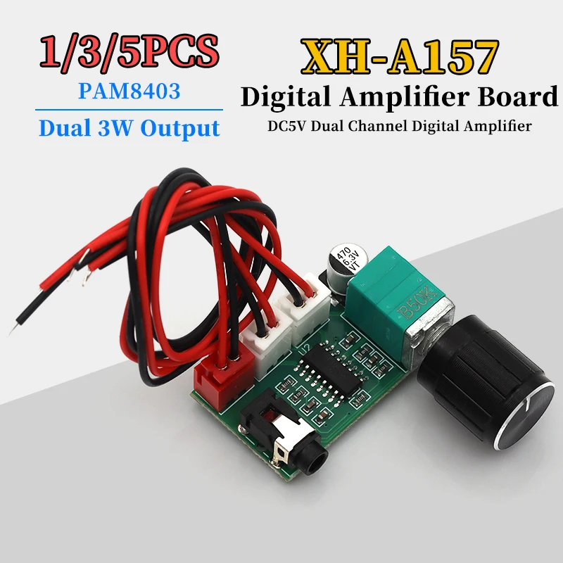 1/3/5PCS XH-A157 Digital Amplifier Board PAM8403 with Volume Knob Aux Input USB 5V Power Supply Dual 3W Output