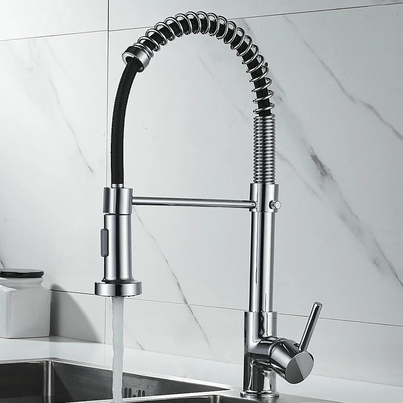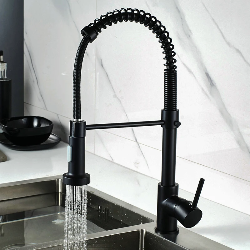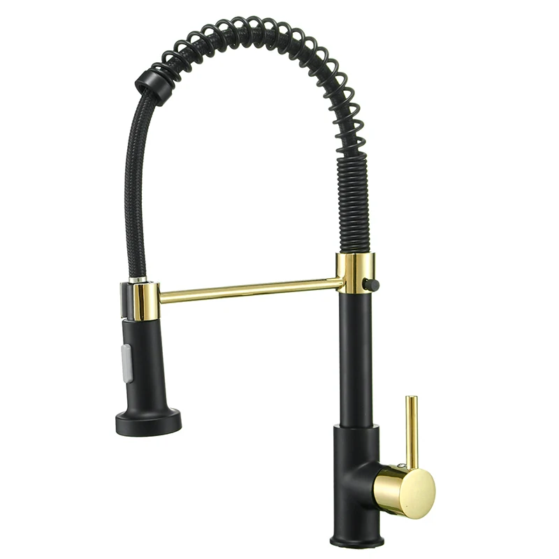صنبور المطبخ VGX مع بخاخ منسدل وخلاط بمقبض واحد للحوض 360 ° صنابير دوارة على طراز الربيع نحاس كروم ذهبي أسود