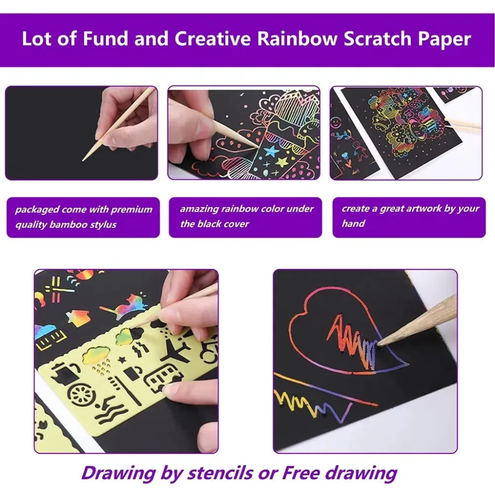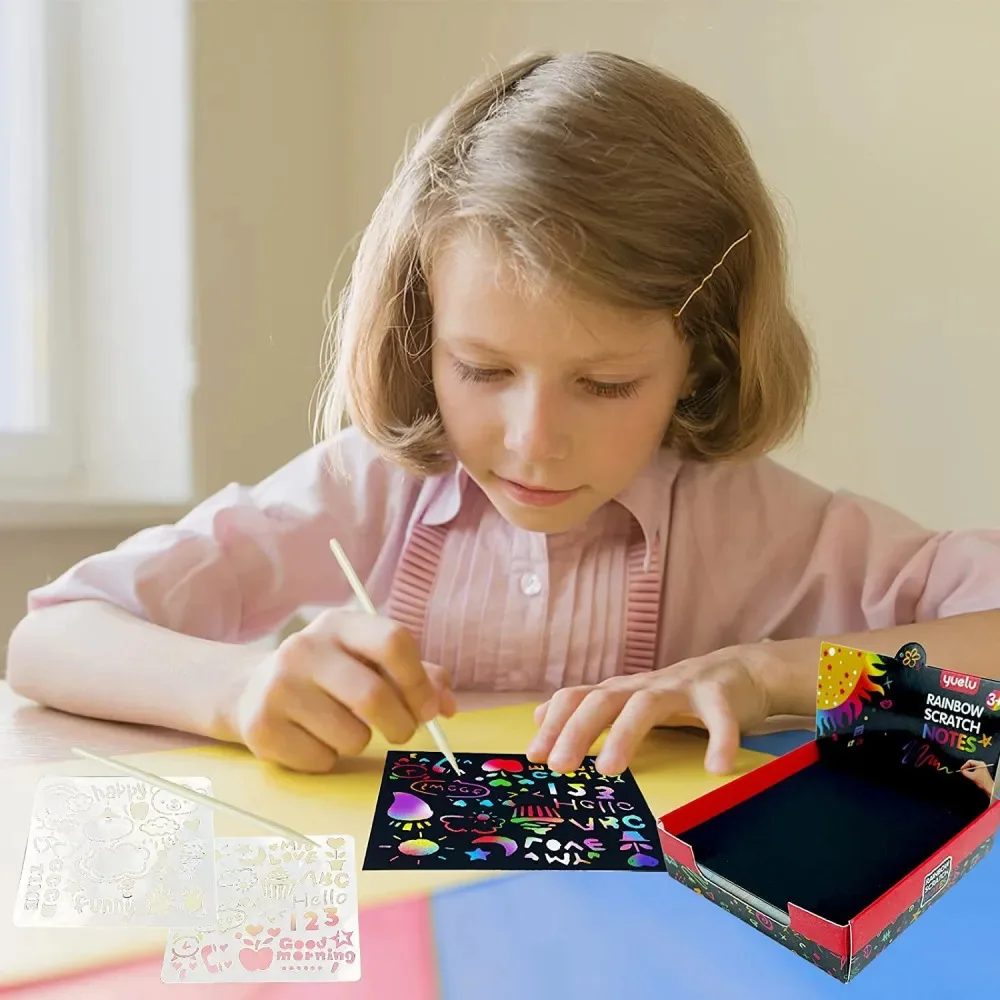 100 قطعة قوس قزح خدش ملاحظات صغيرة ورقة الوسادة بطاقات مع رسم الاستنسل الأطفال أطفال رسم يدوي اللوحة ألعاب تعليمية الهدايا