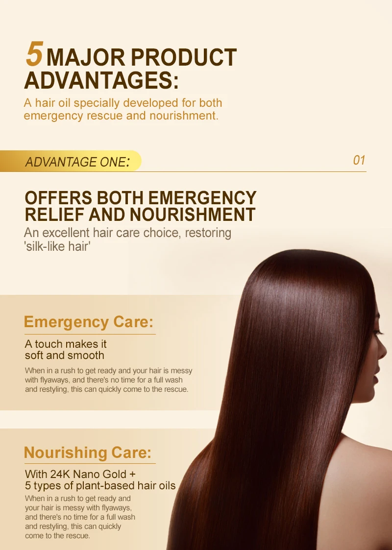 زيت العناية بالشعر المغذي بالذهب عيار 50 مل عيار 24 قيراط*1