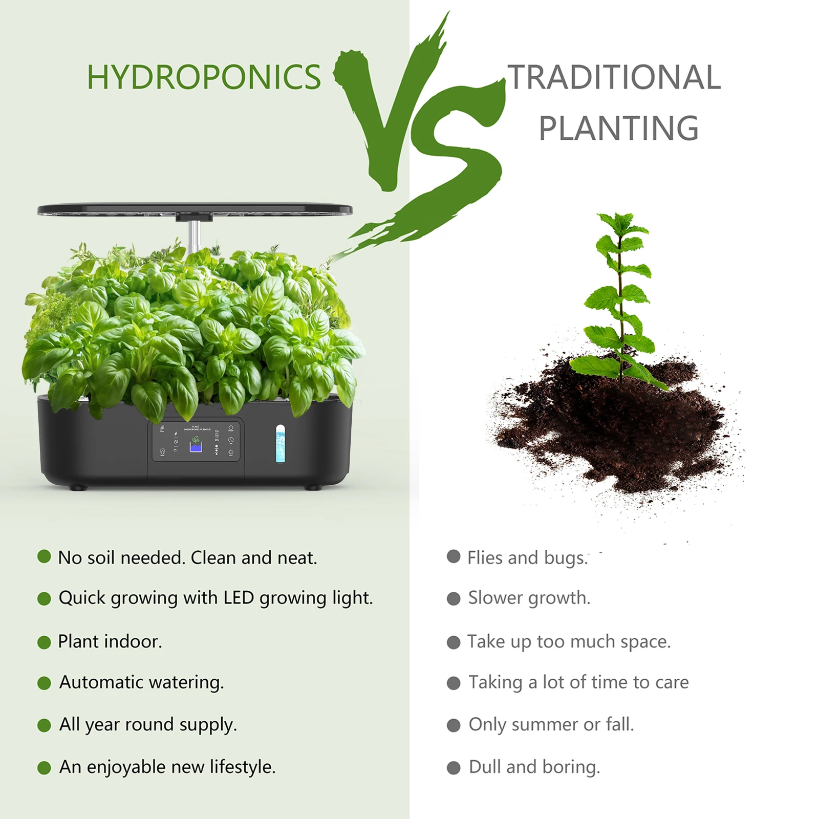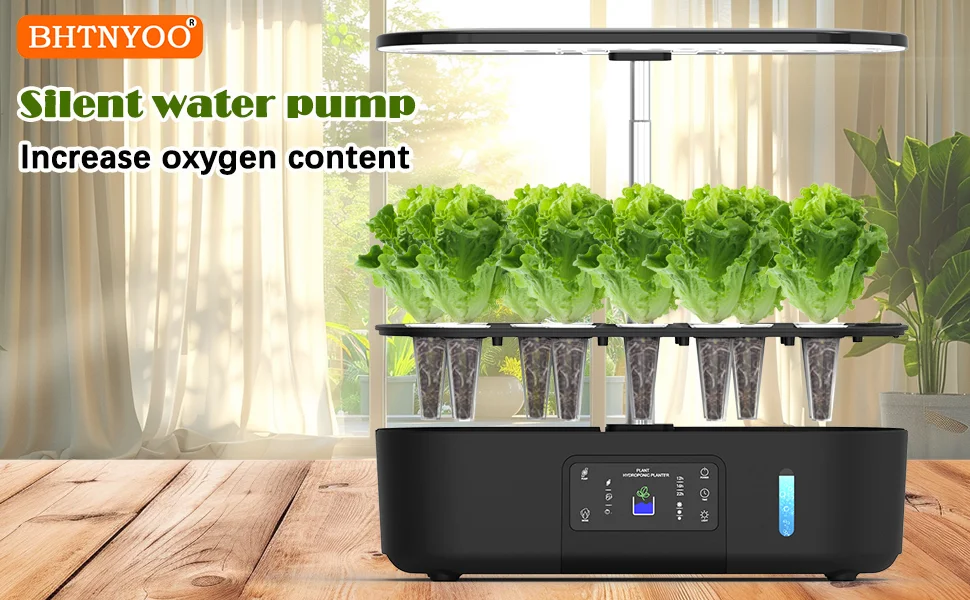 تتميز مجموعة BHTNYOO المائية بلوحة شاشة لمس LCD عالية الوضوح، مما يسمح لك بإدارة مجموعة حديقتك بسهولة.تتميز مضخة المياه ذات التوقيت التلقائي بإعداد 12/16/22 ساعة، مما يوفر المزيد من محتوى الأكسجين للجذور.ما هو أكثر إثارة هو أنه يمكن تعديل سطوع مصابيح LED إلى ثلاثة مستويات، ويمكن تعديل السطوع الأكثر ملاءمة وفقًا لحالات النمو المختلفة.دع مجموعة حديقتنا تقدم لك طرق زراعة مختلفة