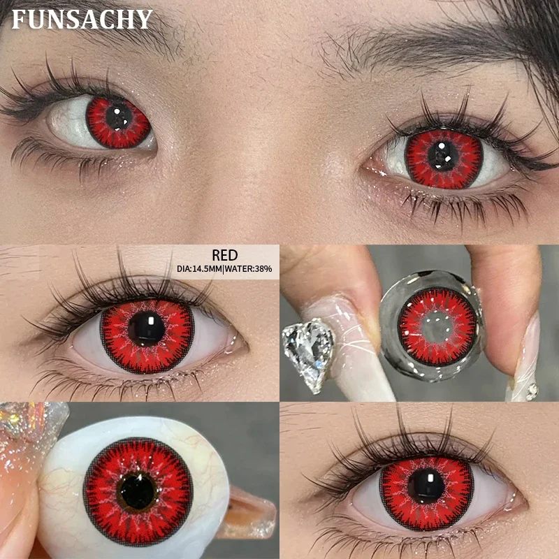 FUNSACHY 1 Pair Vampire Black Contact Lenses for Cosplay Big Eyes Contacts Red White Anime Cosplay Cosmetics Pupils Yearly Use