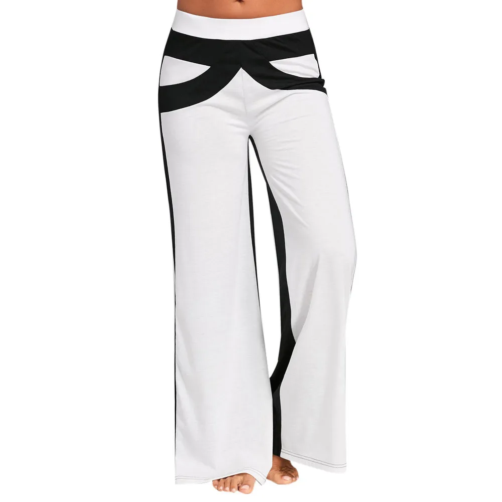 سراويل يوجا نسائية مرقعة بأجزاء سفلية متوهجة منتصف الخصر واسعة الساق