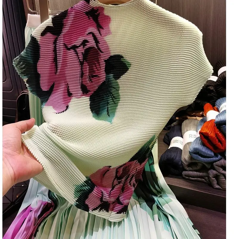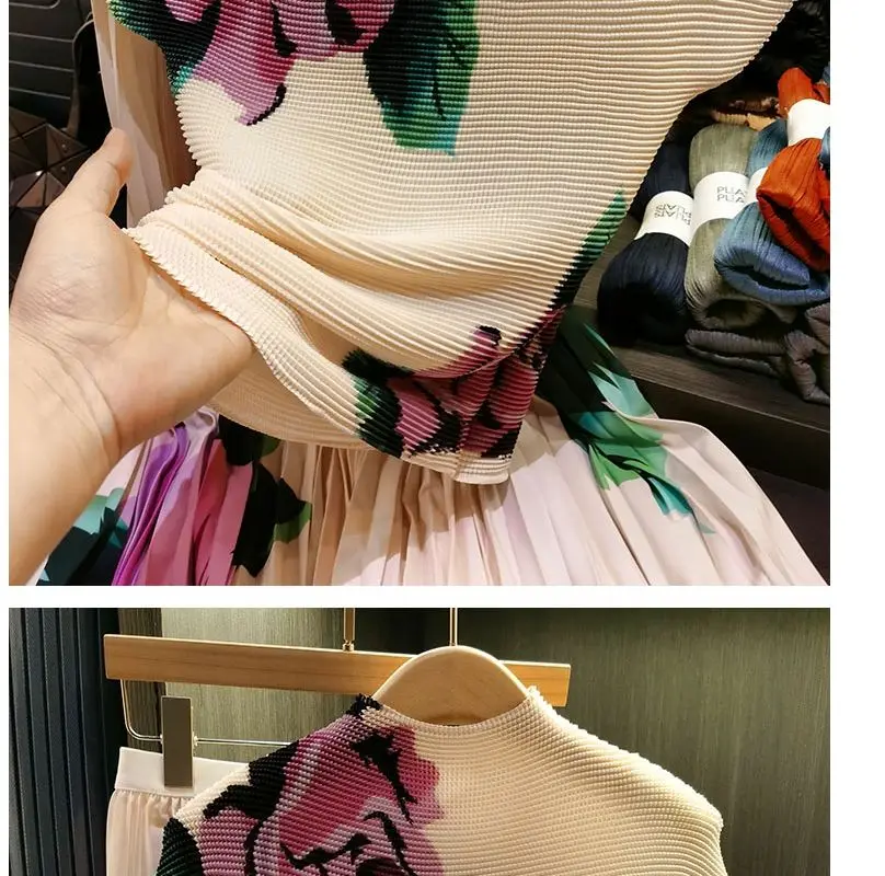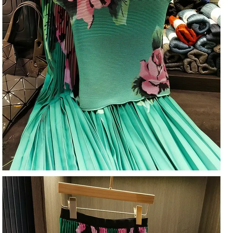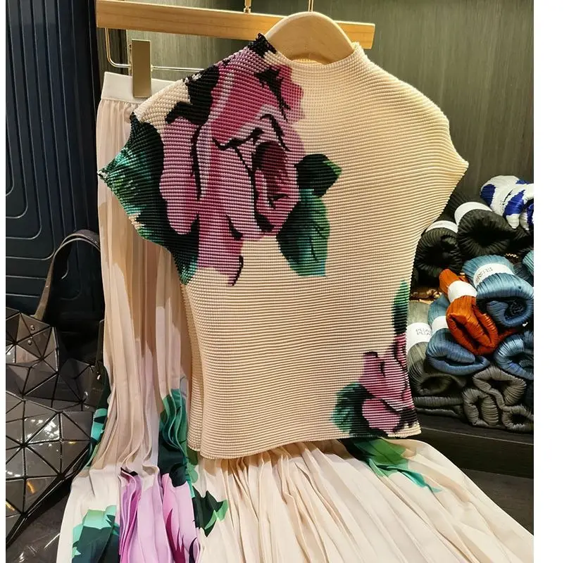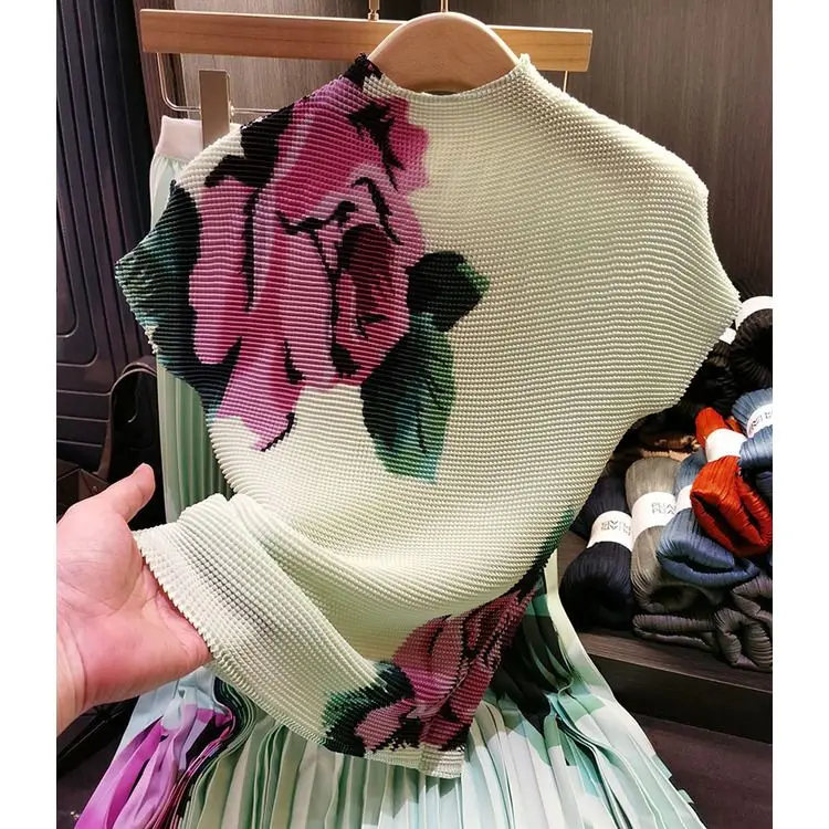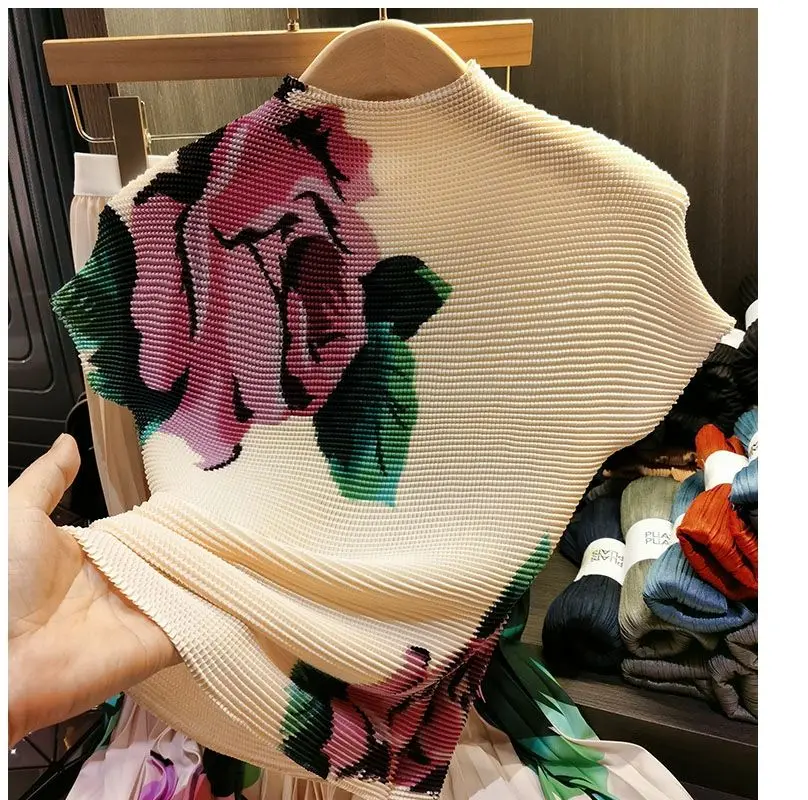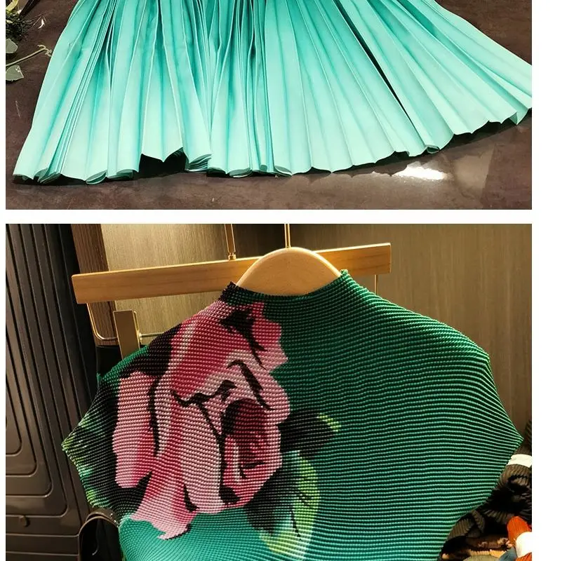 تي شيرت نسائي مطبوع بنصف ياقة عالية وتنورة قصيرة ، تيشيرتات كورية ، أطقم من قطعتين ، ملابس خروج للربيع