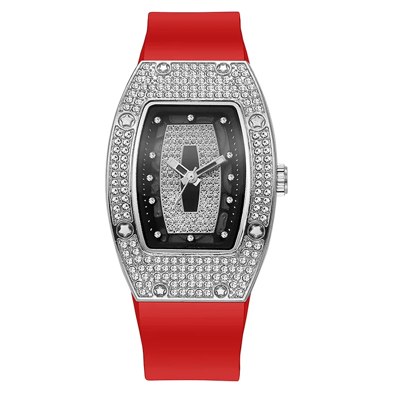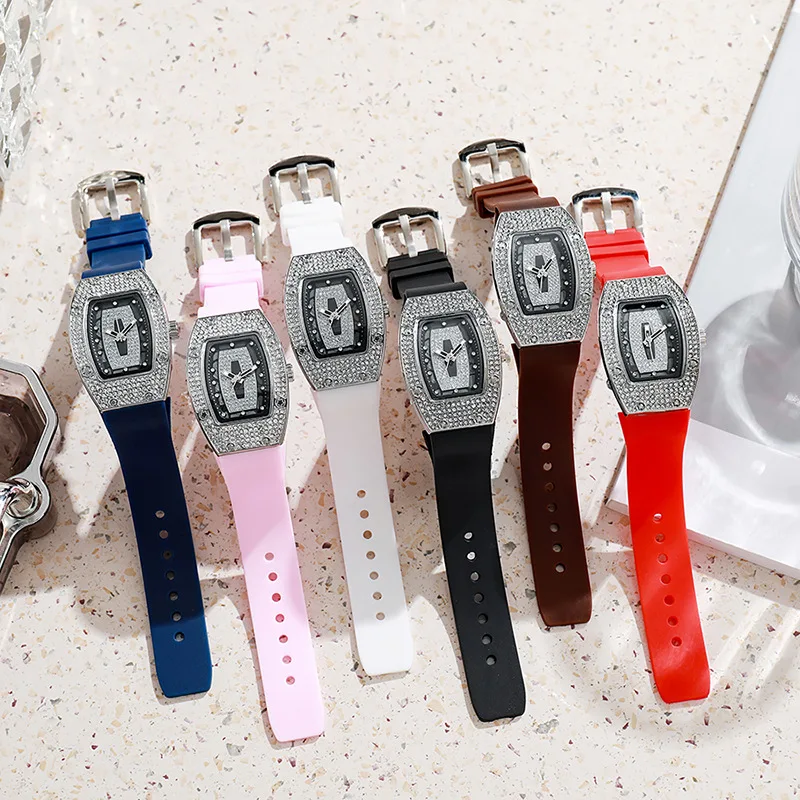 ساعات فاخرة جديدة للمرأة Tonneau كريستال سيليكون جيلي ساعة كوارتز هدايا الطلاب Reloj Mujer ساعات المعصم للسيدات