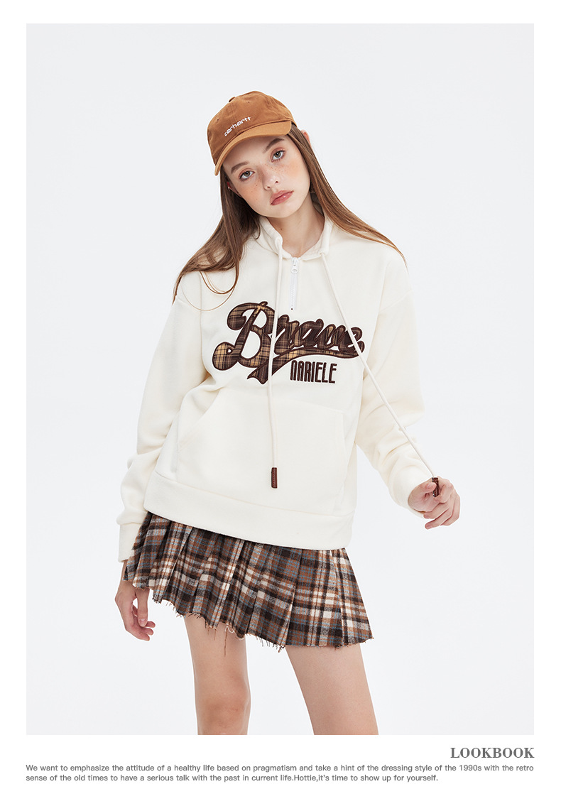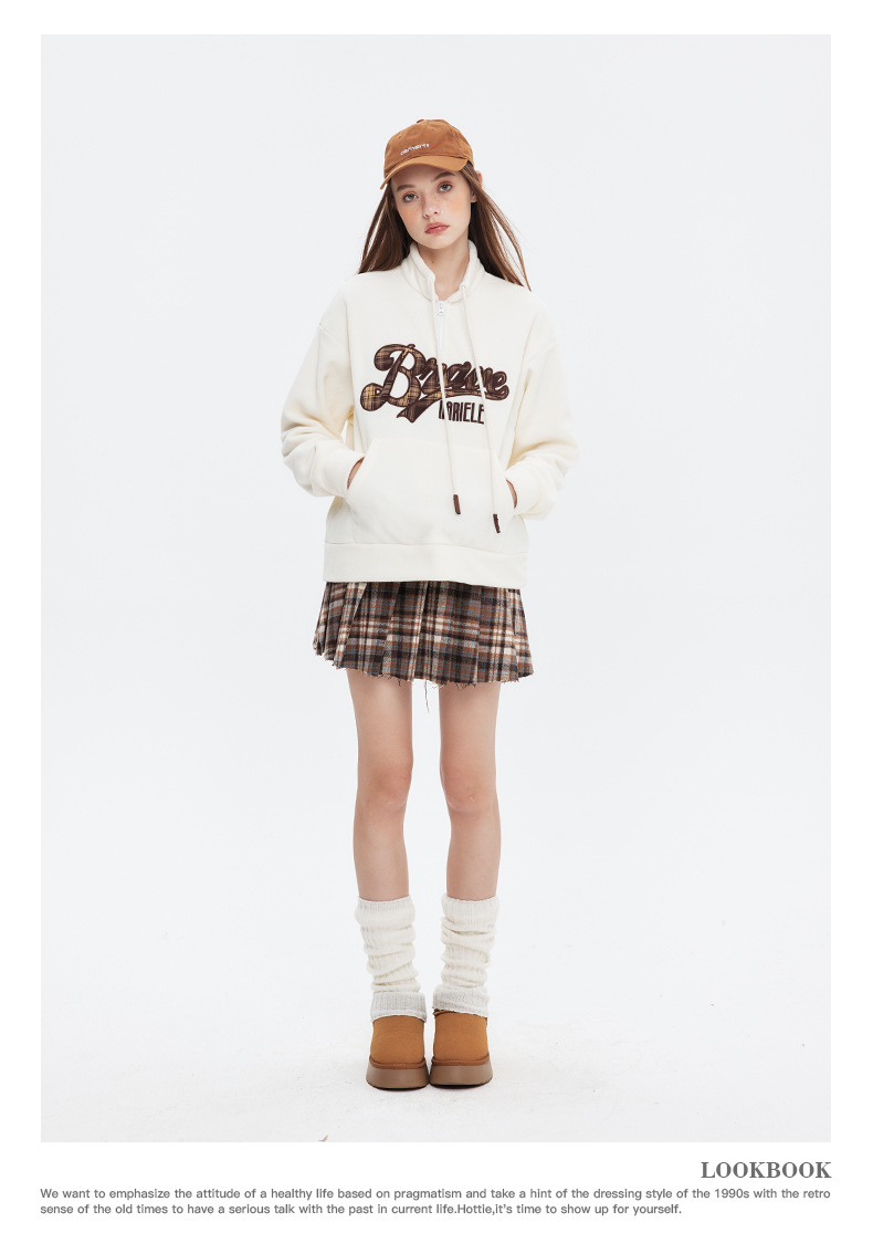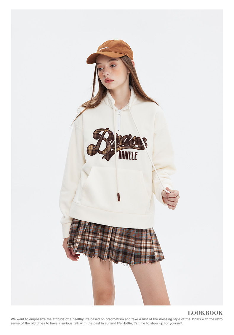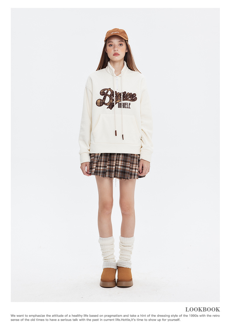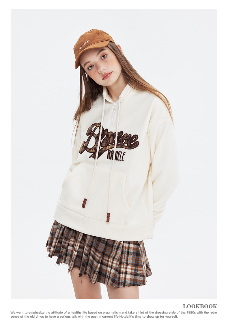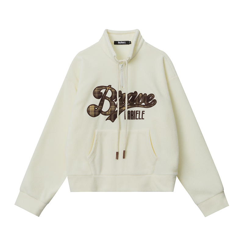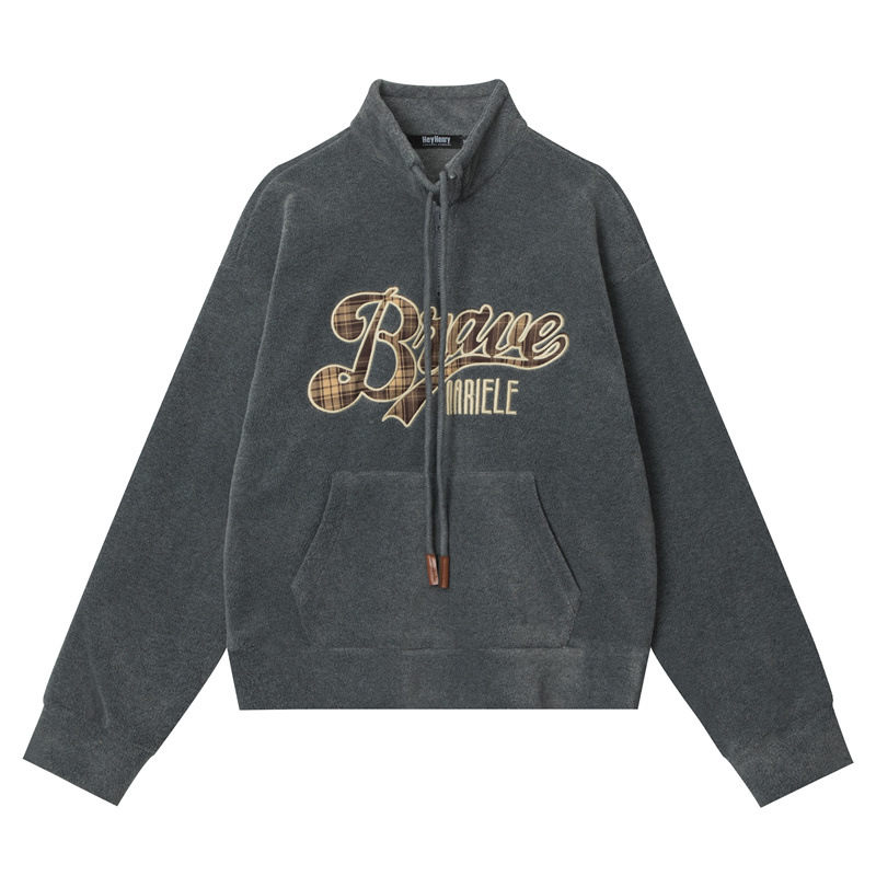 ملابس نسائية بلس قطنية عصرية مع شعار مشغول بالتطريز، هودي للرجال حجم كبير فضفاض برقبة واقفة للم{}{ coupe}}
