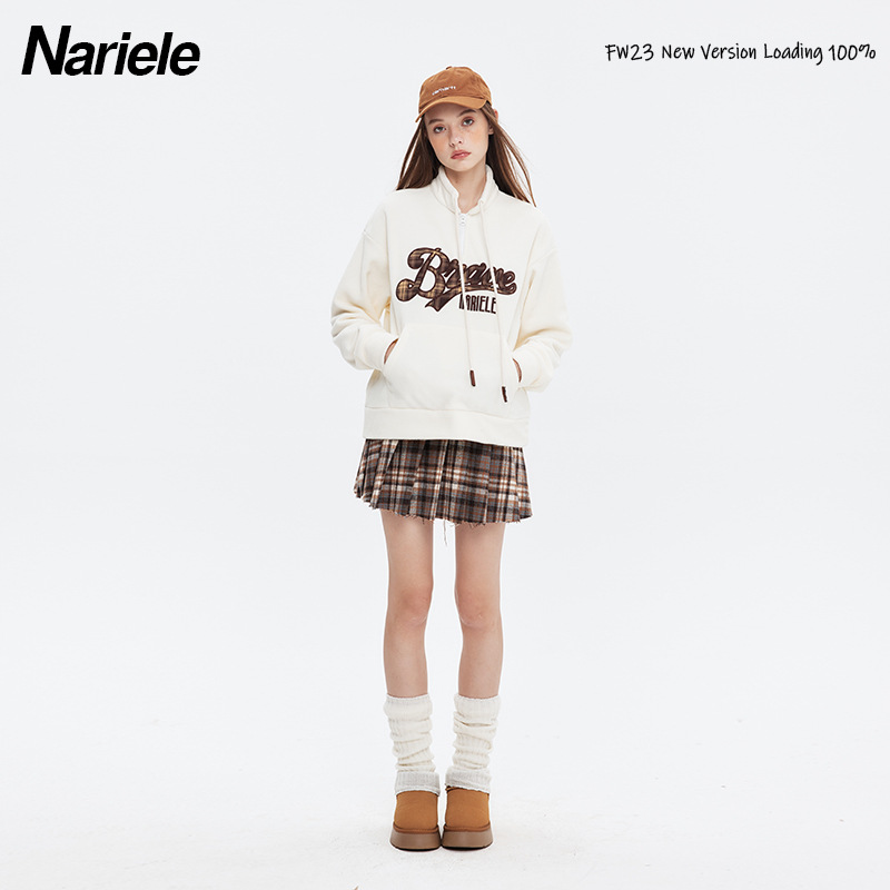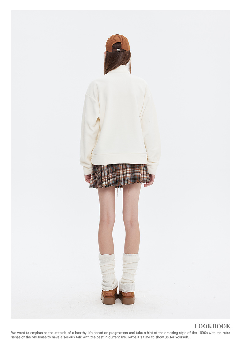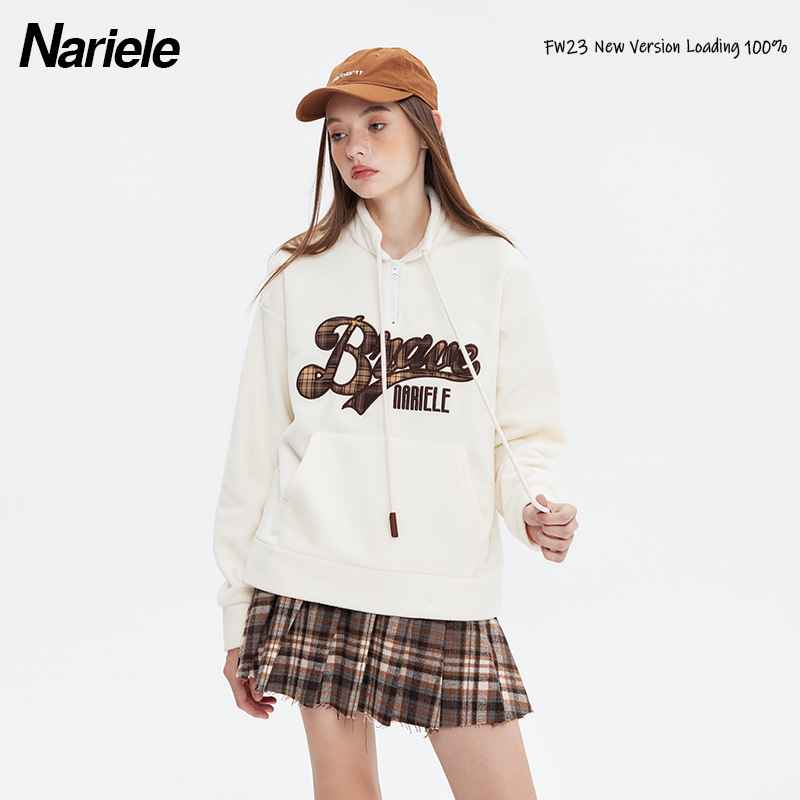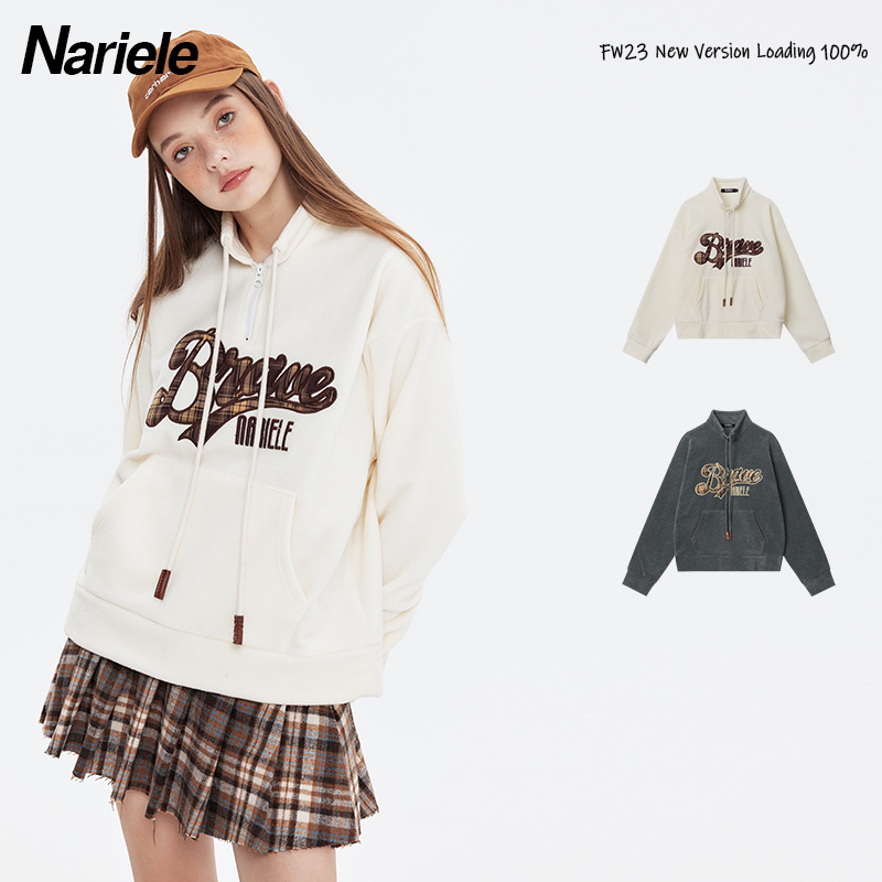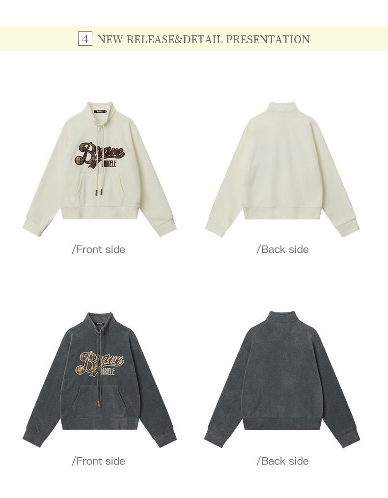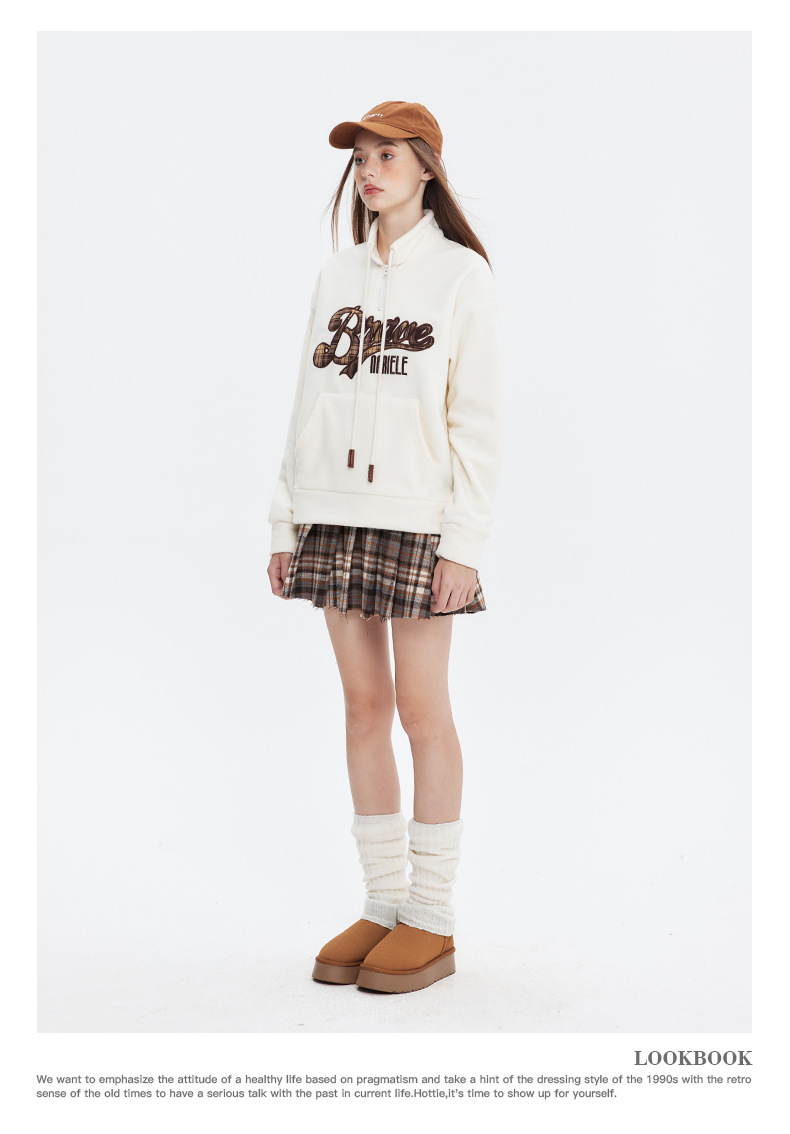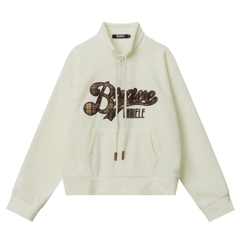 ملابس نسائية بلس قطنية عصرية مع شعار مشغول بالتطريز، هودي للرجال حجم كبير فضفاض برقبة واقفة للم{}{ coupe}}