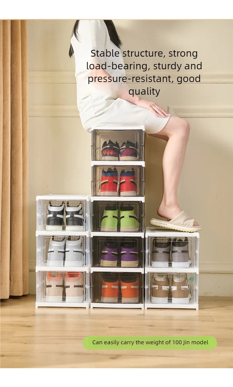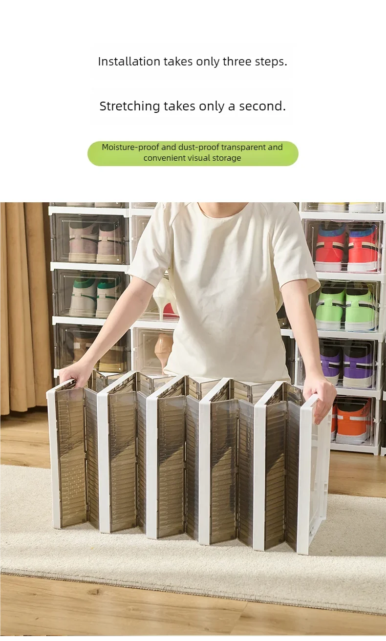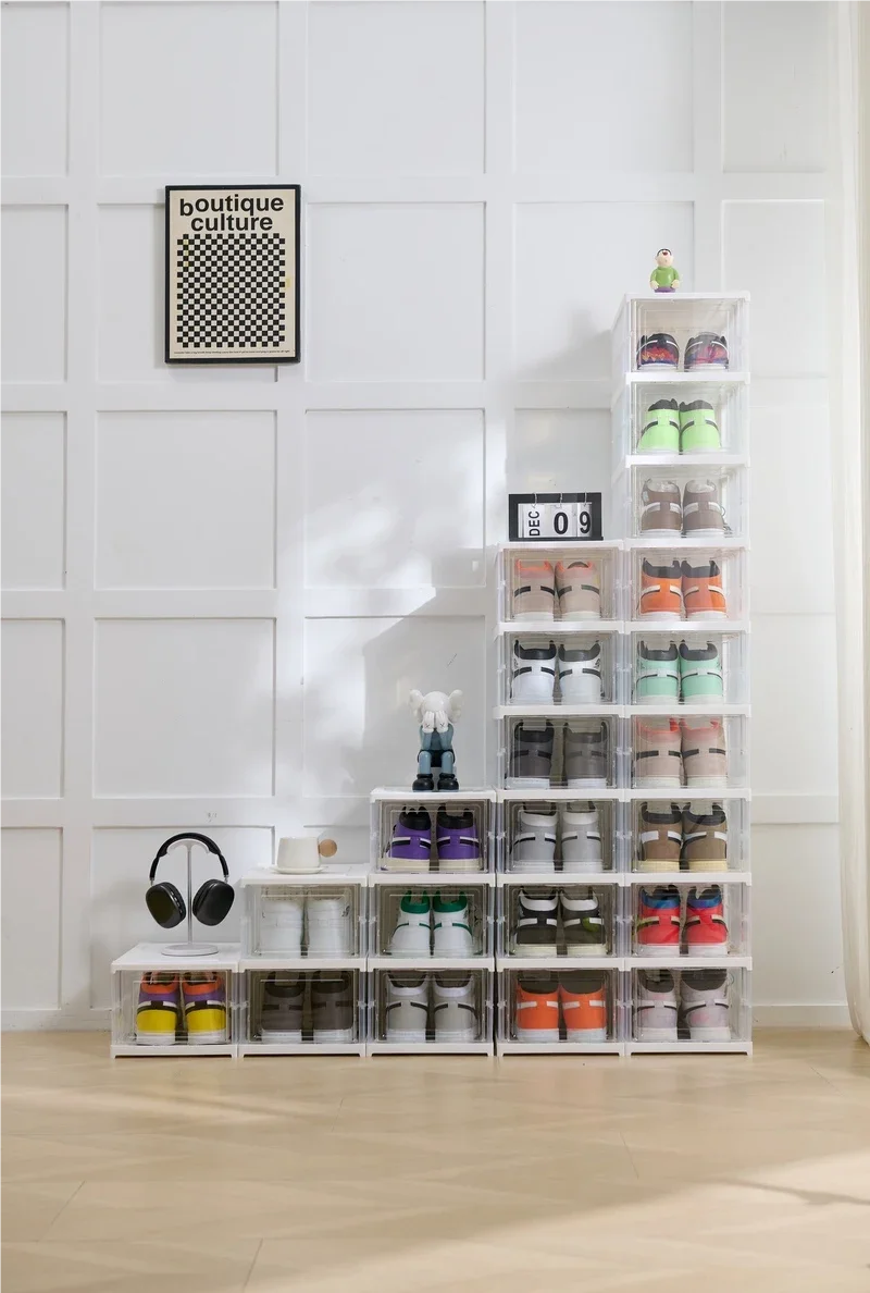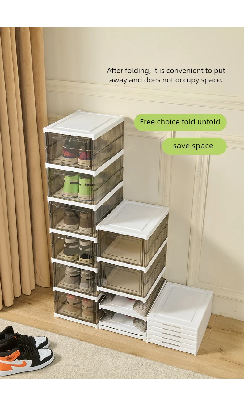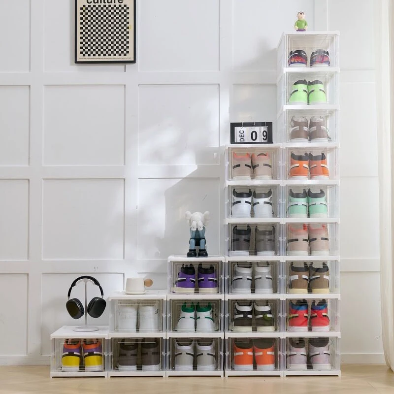 1.جميل: بفضل الألواح الجانبية البيضاء وألواح الأبواب عالية الشفافية، تم تصميم صندوق الأحذية بشكل رائع وتشكيله بشكل متكامل.إنه ليس مجرد صندوق تخزين، ولكنه أيضًا قطعة تزيينية تعزز الجمالية العامة.
