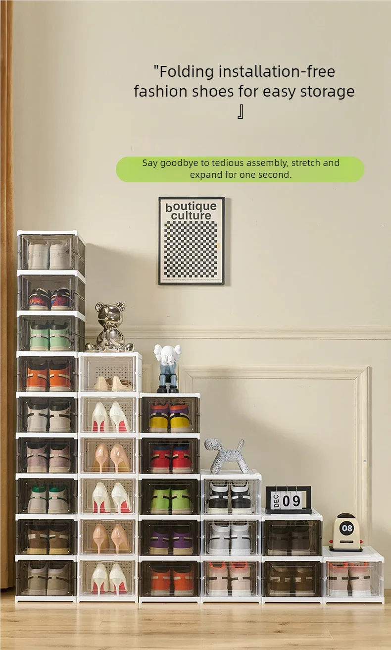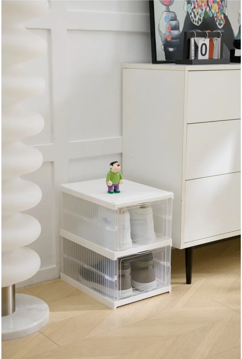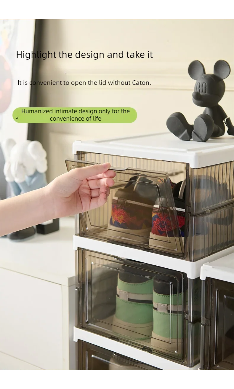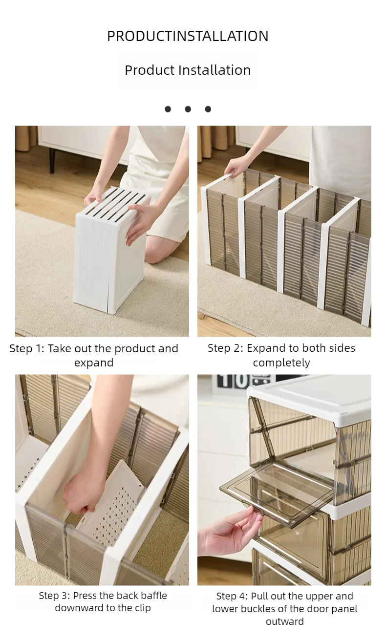 1.جميل: بفضل الألواح الجانبية البيضاء وألواح الأبواب عالية الشفافية، تم تصميم صندوق الأحذية بشكل رائع وتشكيله بشكل متكامل.إنه ليس مجرد صندوق تخزين، ولكنه أيضًا قطعة تزيينية تعزز الجمالية العامة.