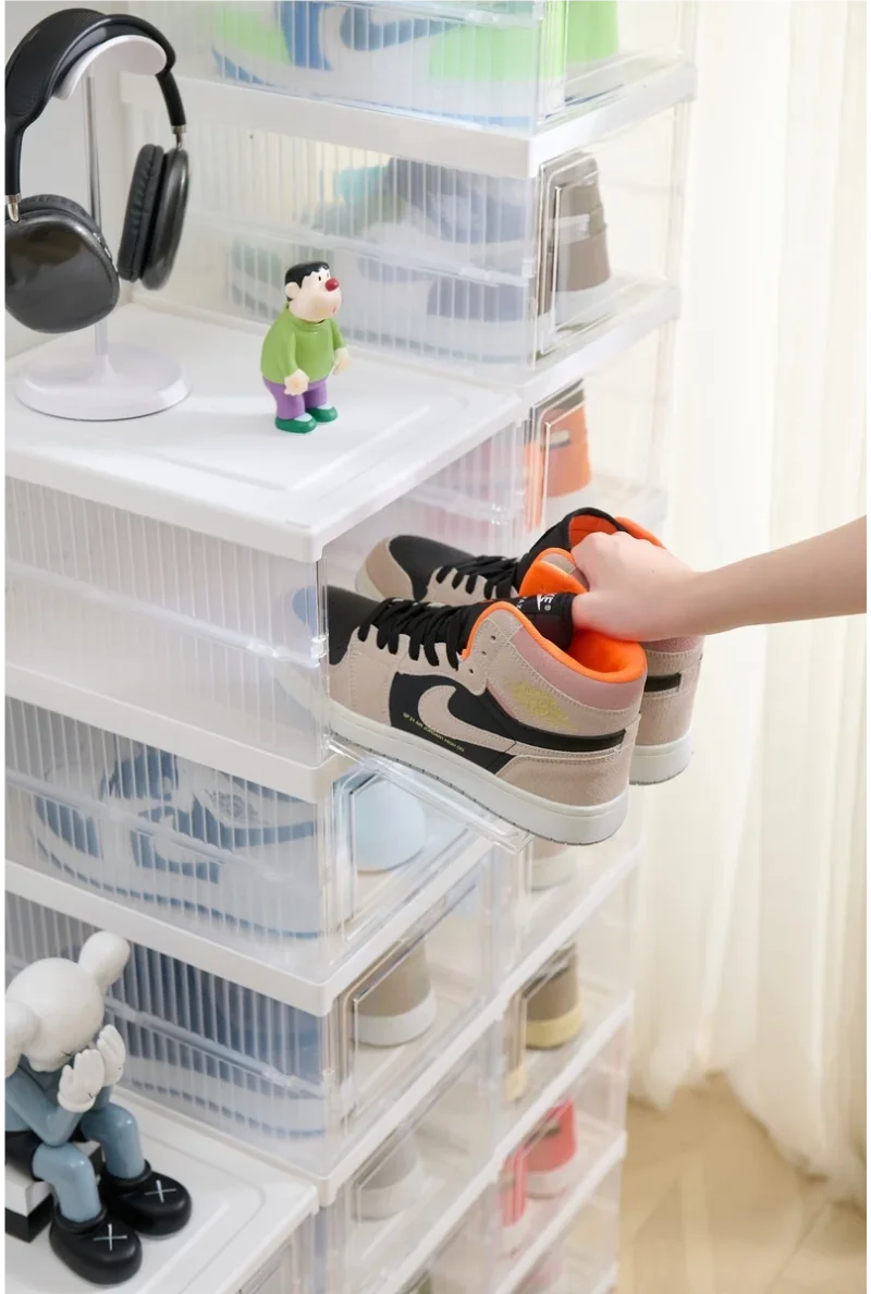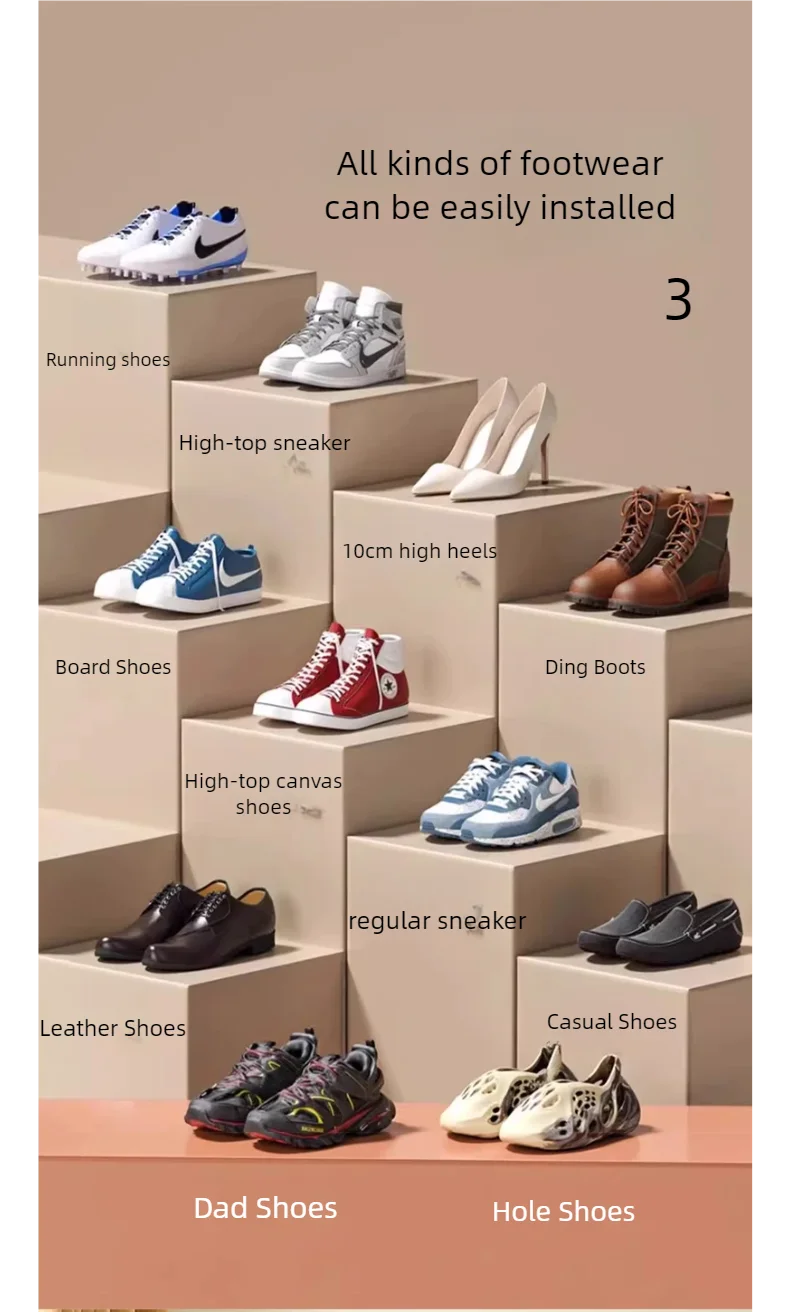 4.سعة كبيرة: تم تصميم صندوق الأحذية بمساحة مرتفعة وموسعة، مما يوفر مساحة واسعة لاستيعاب الكعب العالي والأحذية الرياضية.