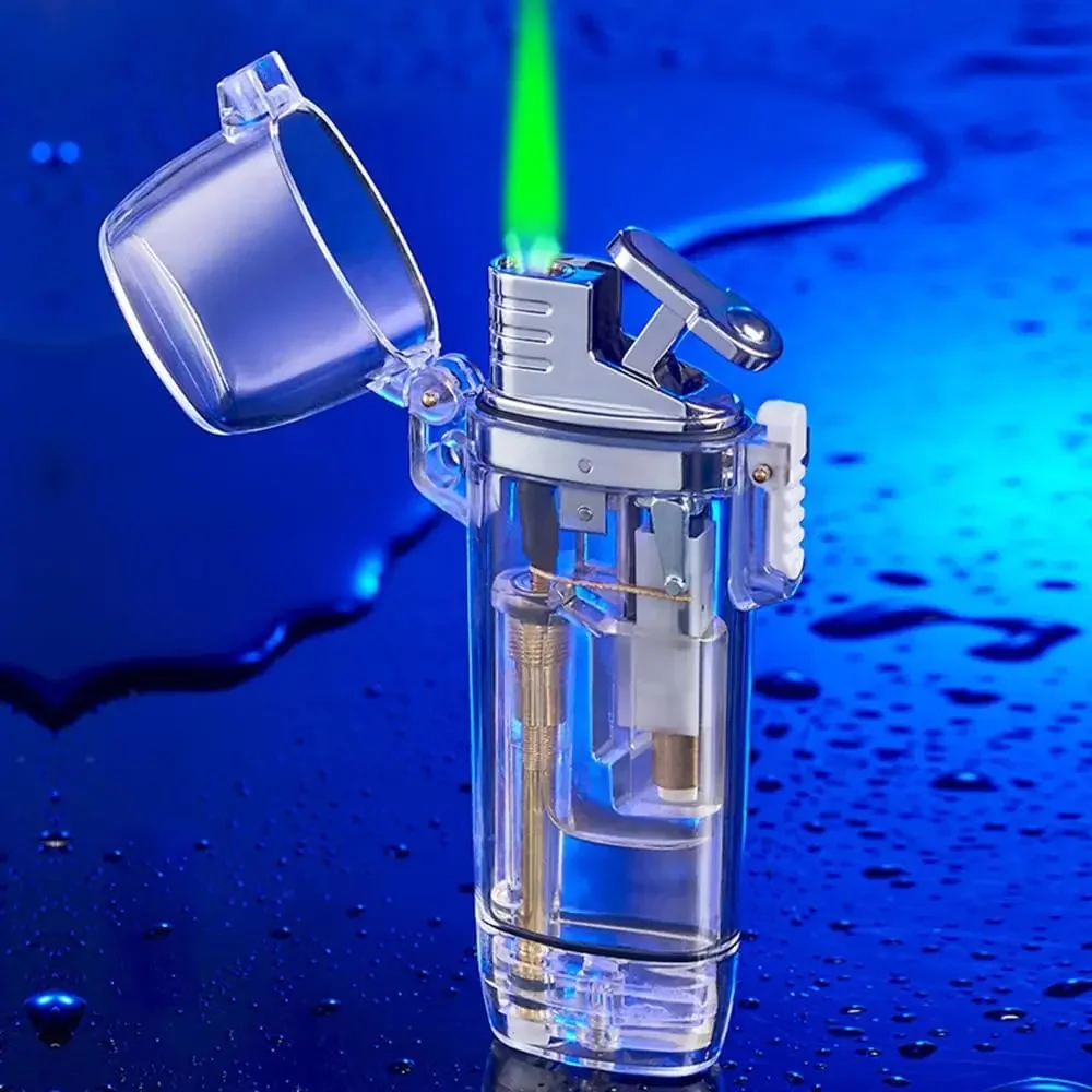 ولاعة سجائر شفافة مقاومة للماء لهب أخضر مع شعلة متدرجة ولاعة غاز البيوتان لملحقات السجائر الهدايا