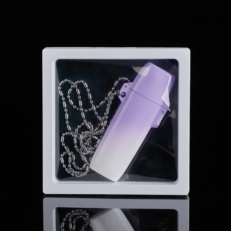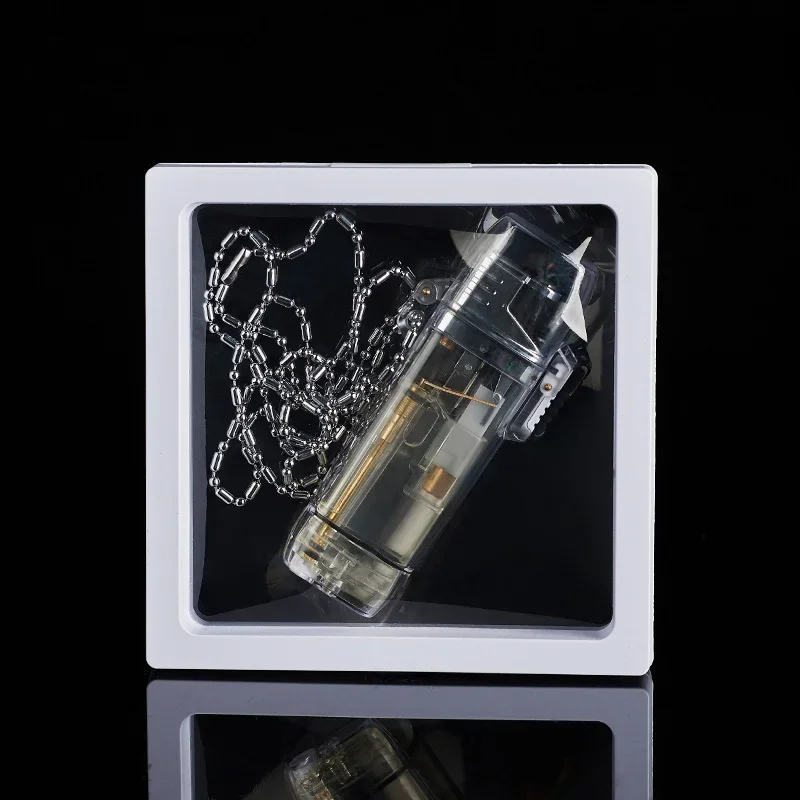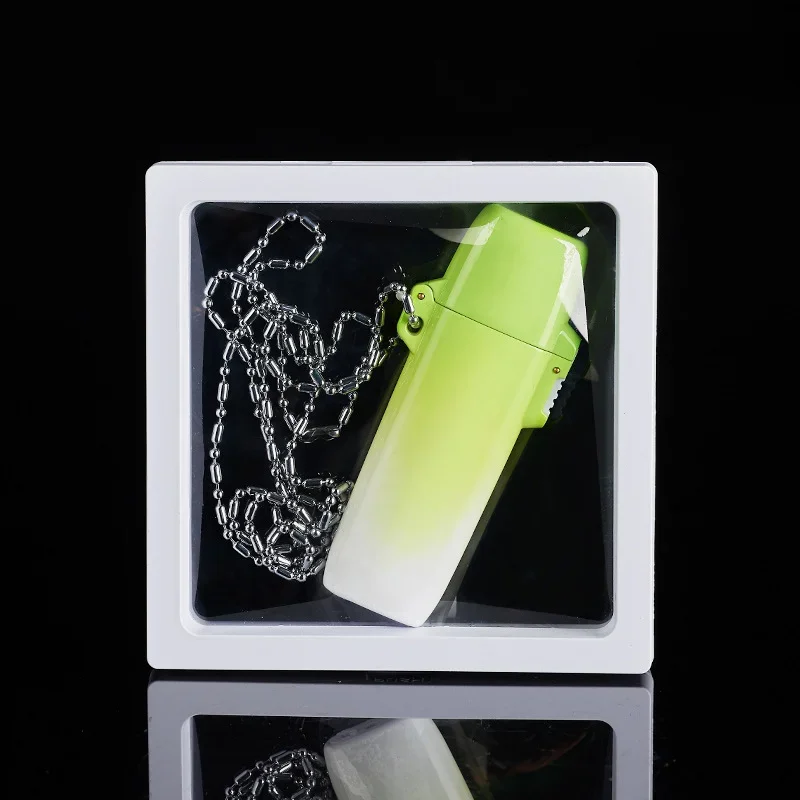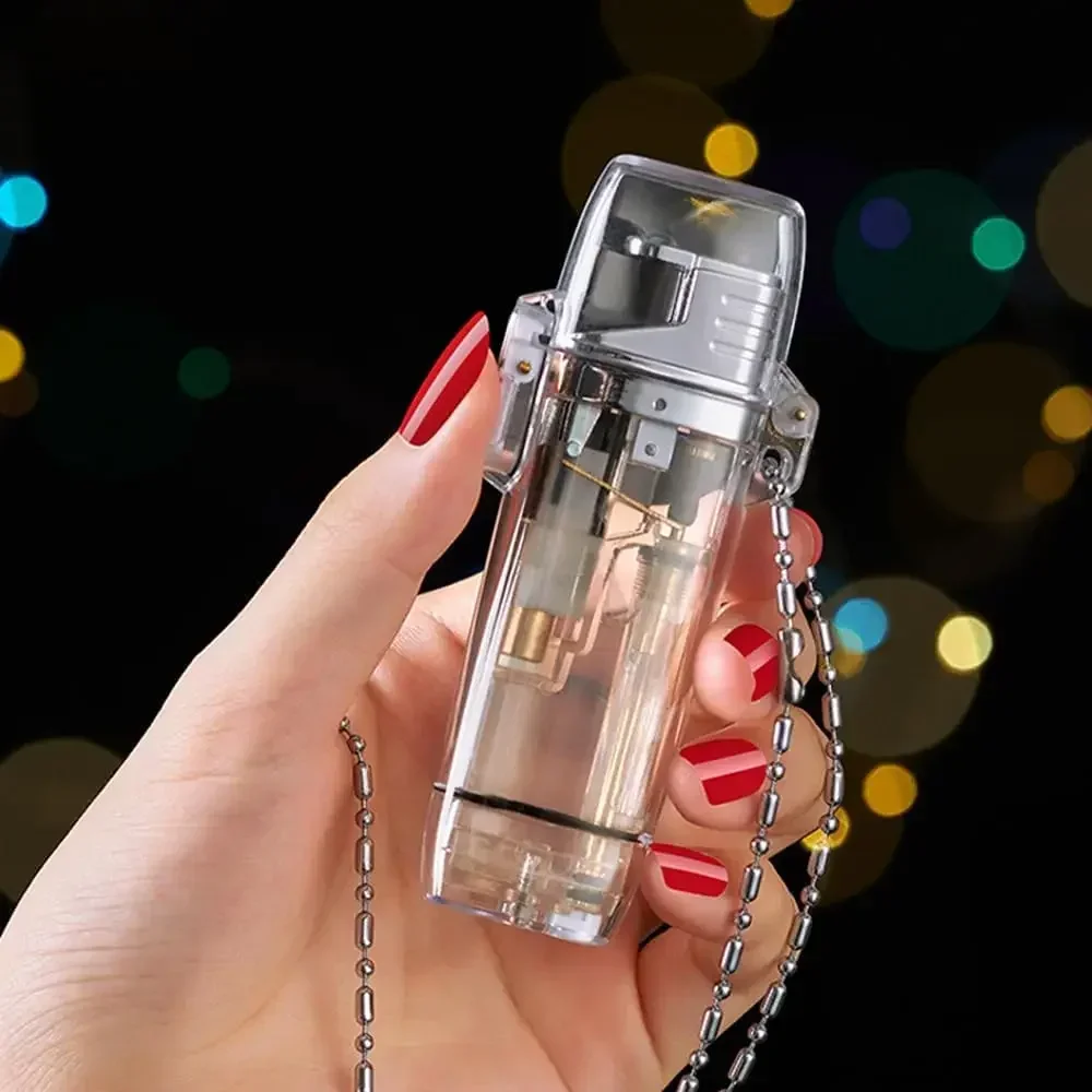 ولاعة سجائر لهب خضراء شفافة مقاومة للماء مع مصباح سلسلة متدرجة ولاعة غاز البوتان للهدايا إكسسوارات سجائر