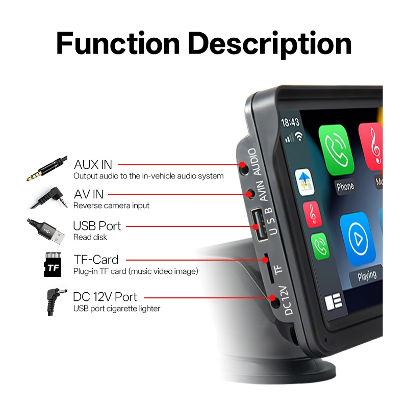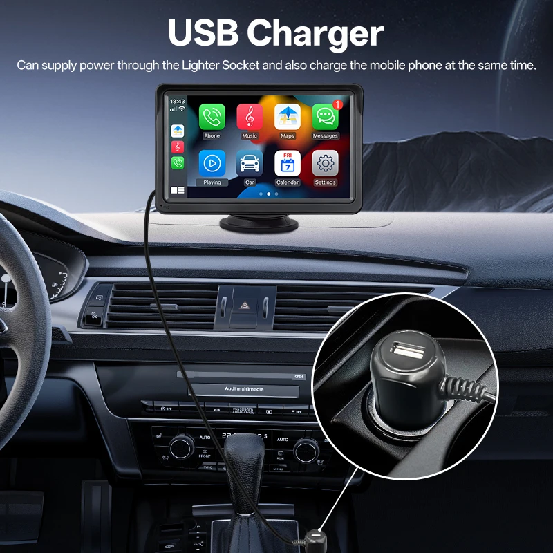 يتم توصيل مشغل عرض الوسائط المتعددة واستخدامه من خلال ولاعة السجائر، وهو مريح للغاية ومريح في التركيب.يمكن تركيب جميع السيارات واستخدامها.