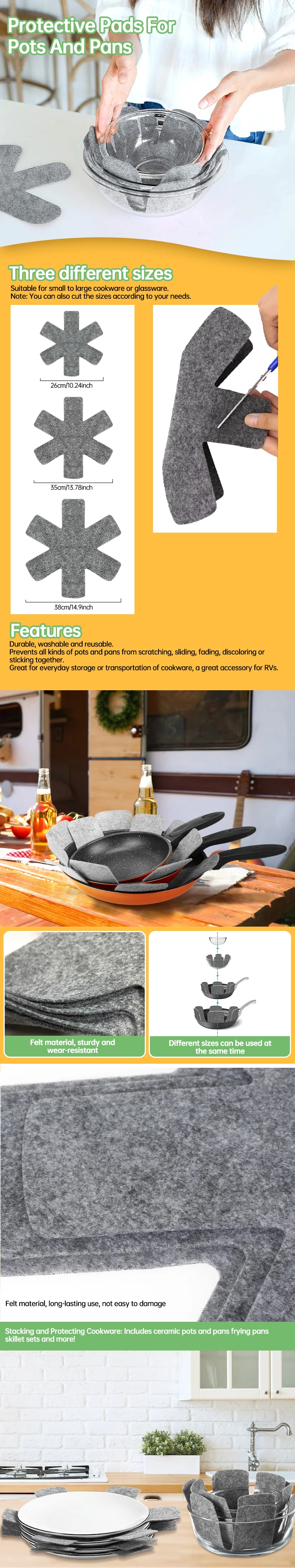 3/9/12/15/24 قطعة ورأى وعاء ومقلاة حماة غير عصا عموم حماة العزل الحراري غير المنسوجة عموم الحصير