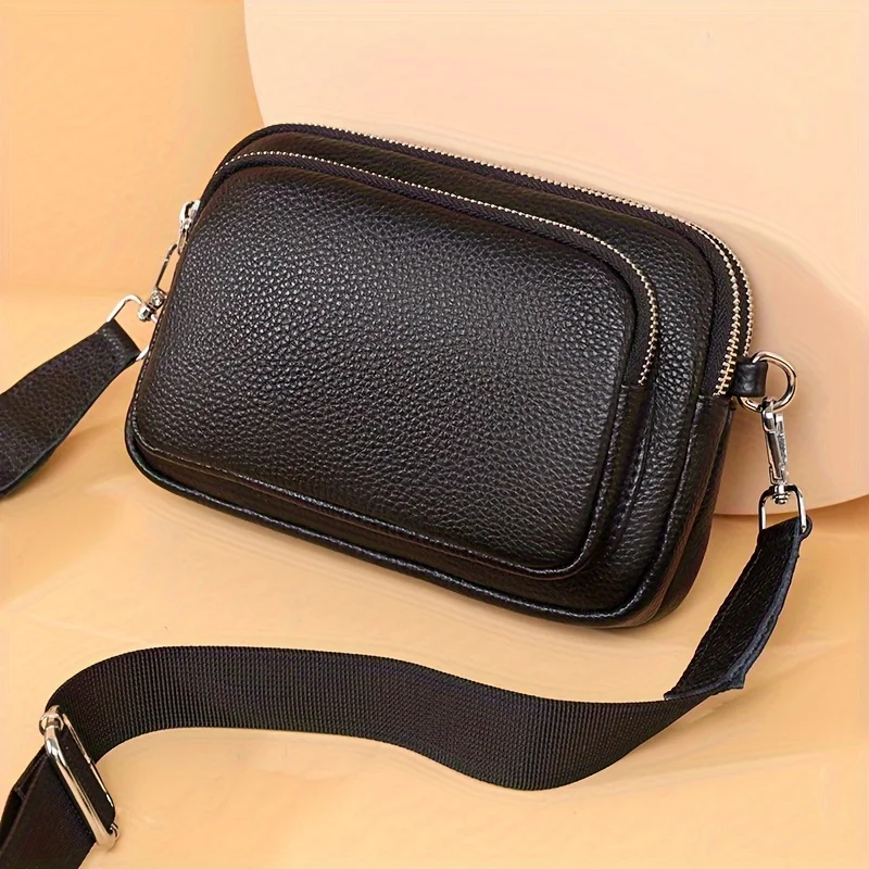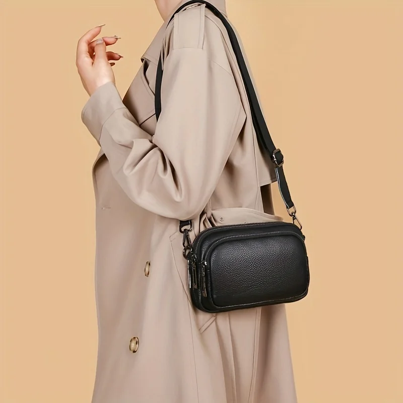 حقيبة كروس على الطراز الكلاسيكي، محفظة نسائية مربعة متعددة الطبقات، حقيبة كتف فاخرة من الجلد الطبيعي