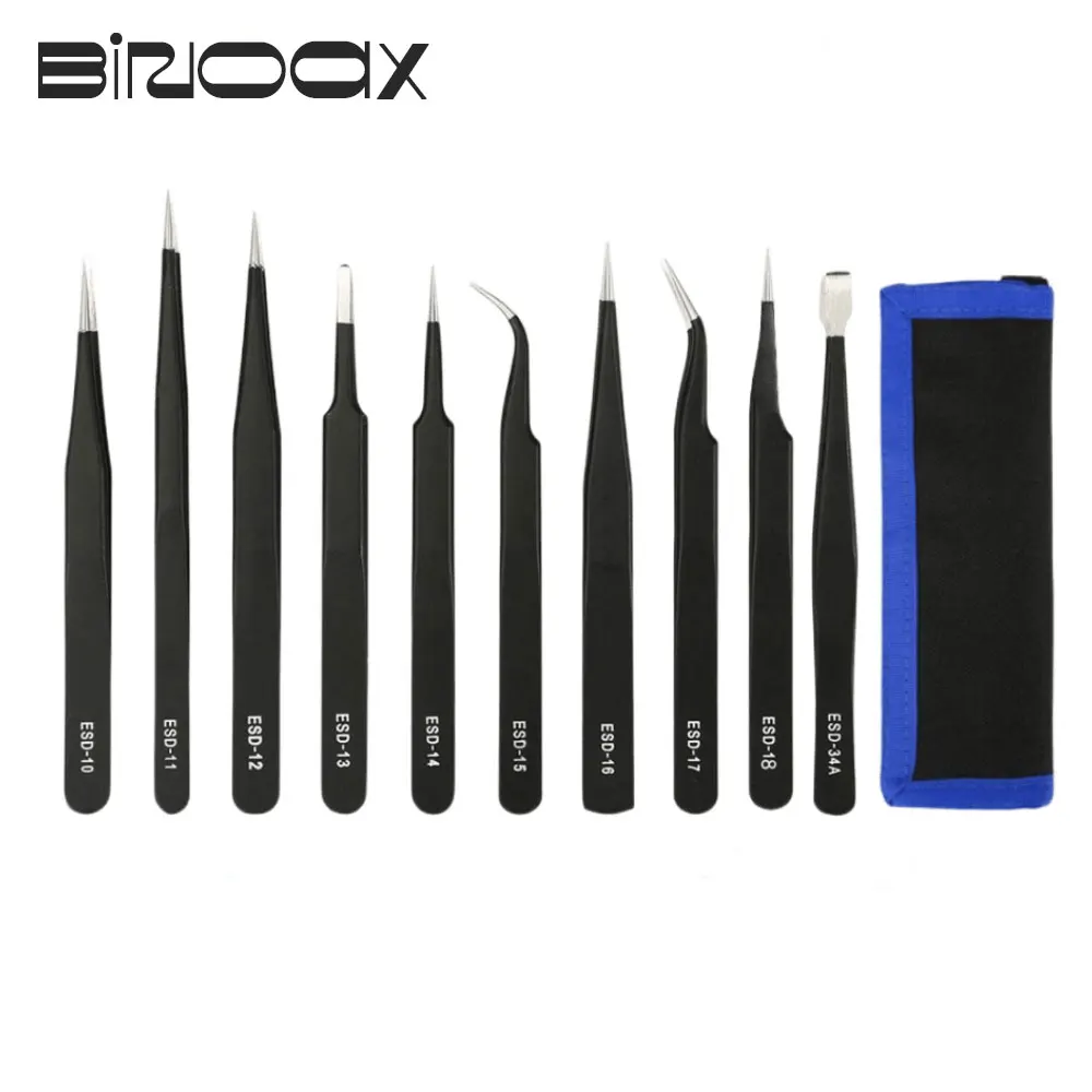 ملاقط من الفولاذ المقاوم للصدأ ESD ، أدوات إصلاح صناعية دقيقة مضادة للساكنة ، ملاقط للإلكترونيات ، لحام حرفي ، 10 240