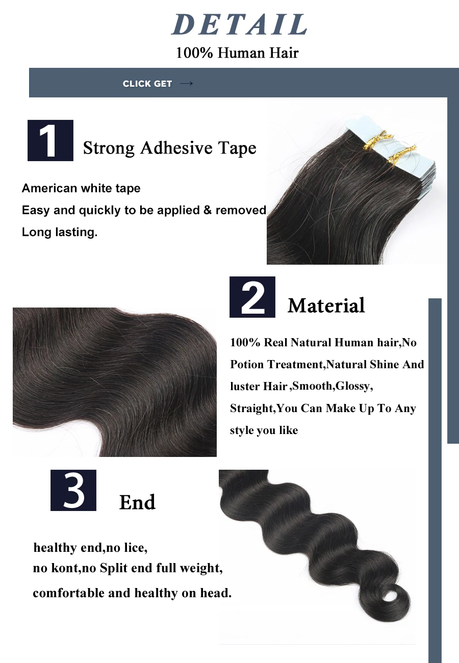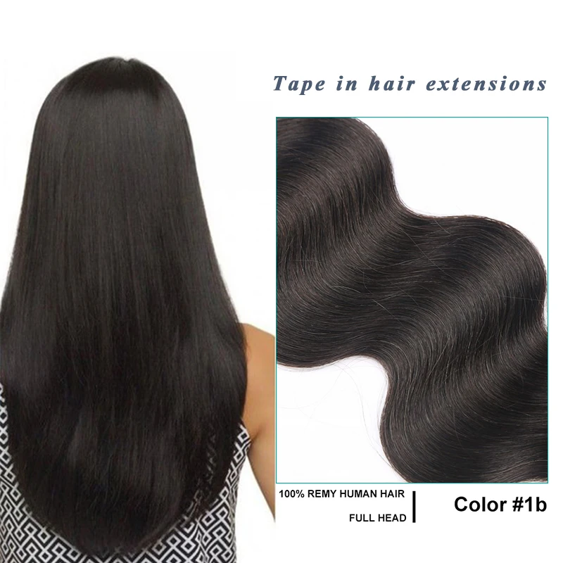 Toysww الجلد لحمة الشريط ريمي في وصلة إطالة شعر طبيعي الجسم موجة 40 قطعة لاصق من اتجاهين الشريط في وصلات شعر