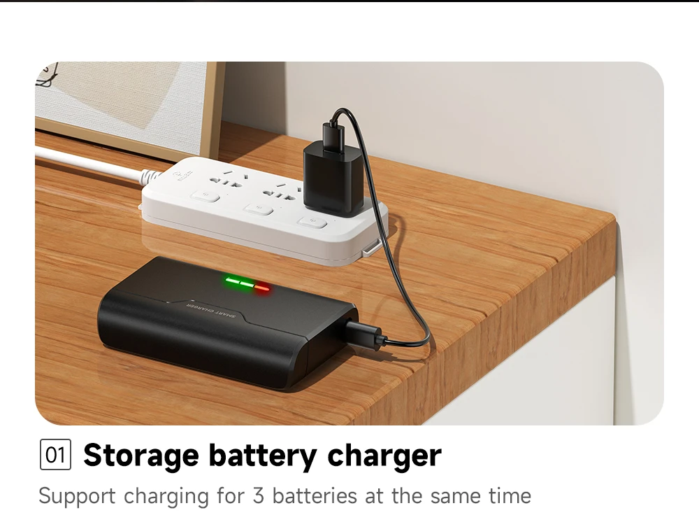 3. يحتوي الشاحن على منفذ من النوع c، تيار عالي 2.4 أمبير، يدعم الشحن السريع، يشحن 3 بطاريات بالكامل لمدة 3 ساعات.