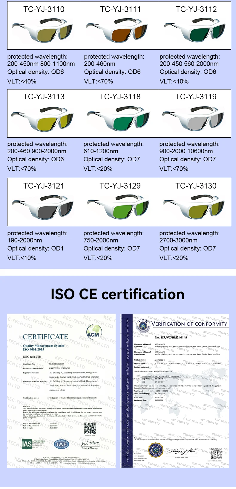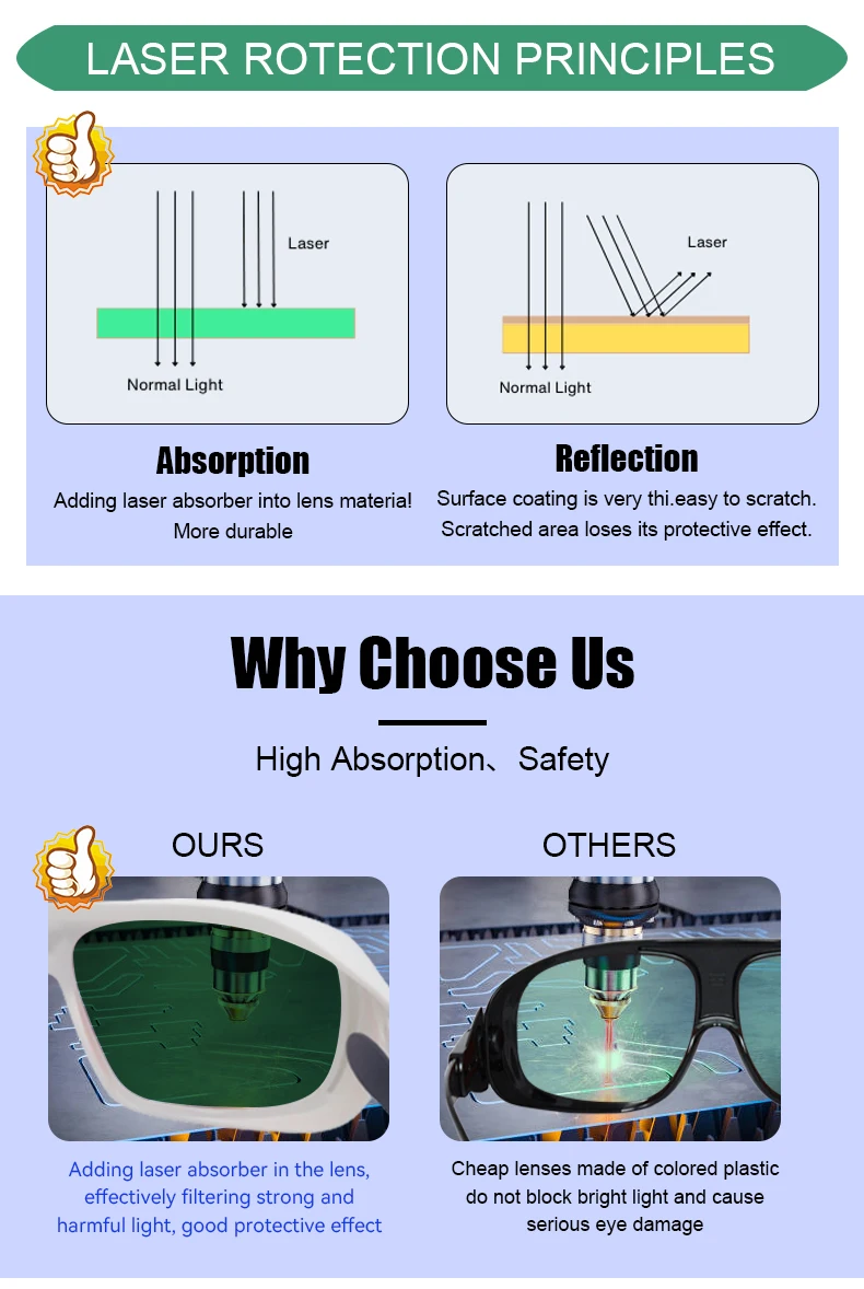 Laser safety glasses 190-2000nm OD6 Laser Protective Goggles for 355nm UV 450nm Blue Laser 532nm 1064nm Laser protection Glasses