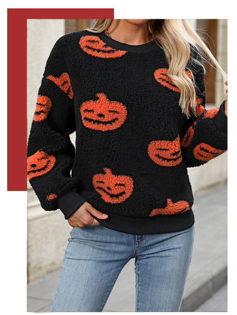ملابس نسائية جديدة لخريف وشتاء النساء، سويتشر مطبوع بتصميم هالوين، فضفاض من القماش المخملي