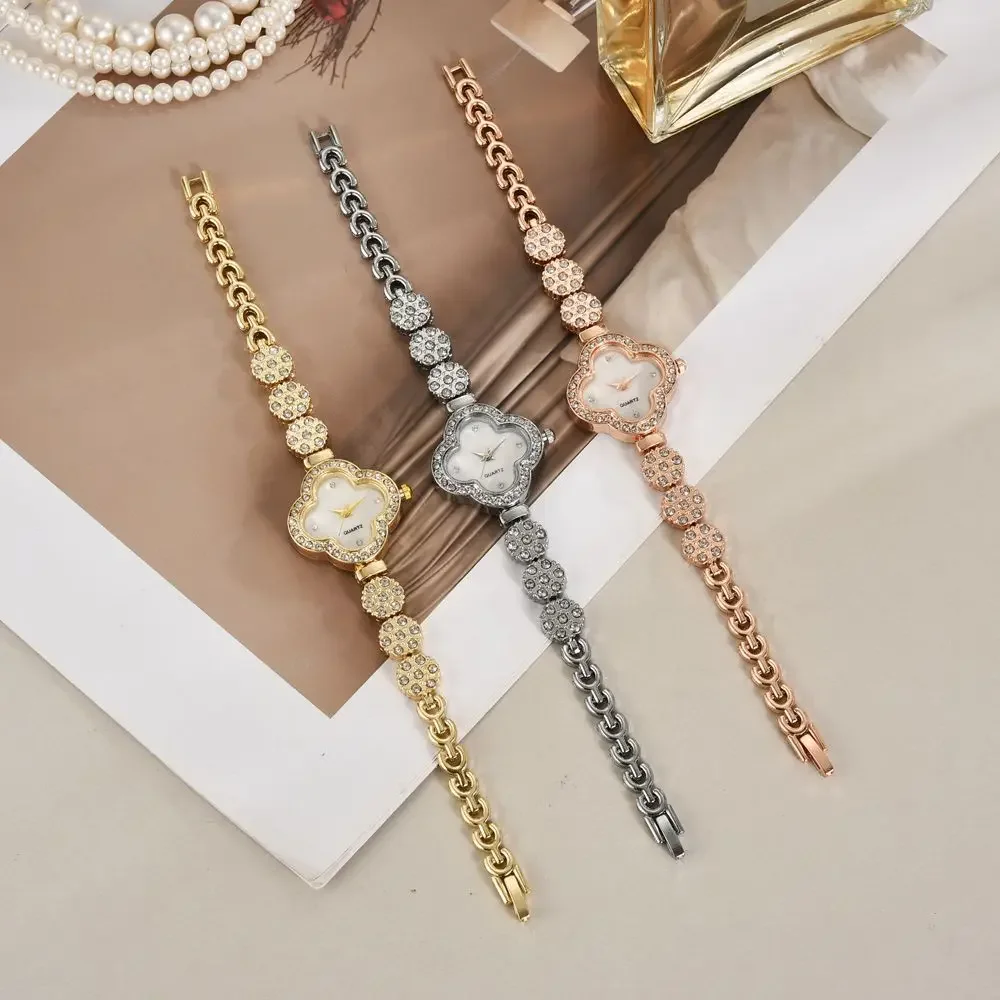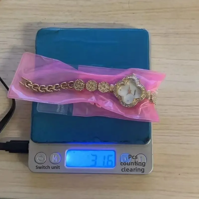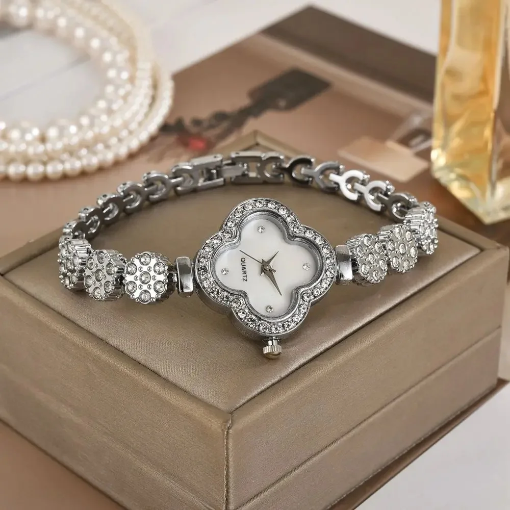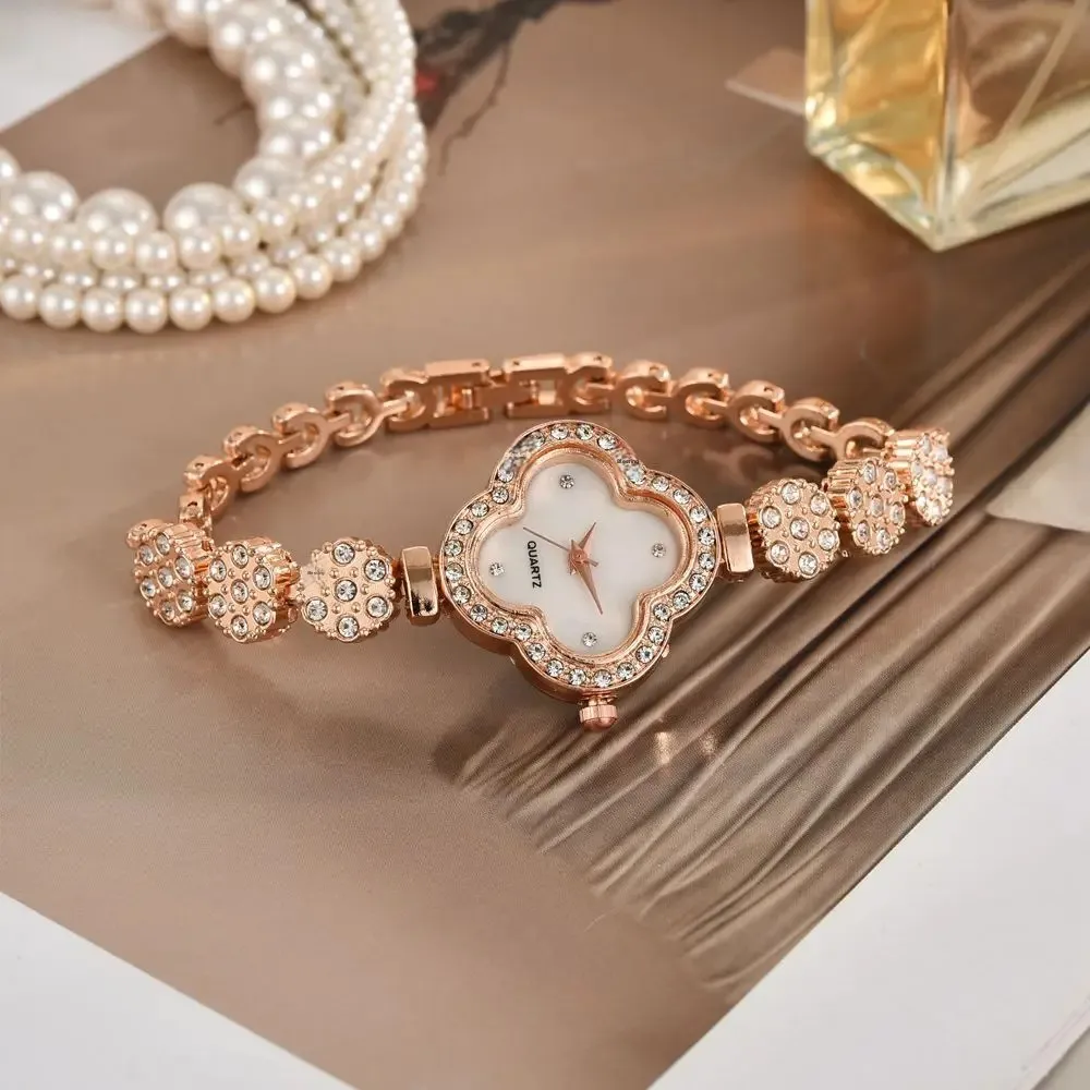 Fashionable Ladies Quartz Watch Small Four Leaf Clover Diamond Embedded Bracelet Mother of Pearl Elegant Luxury Watch