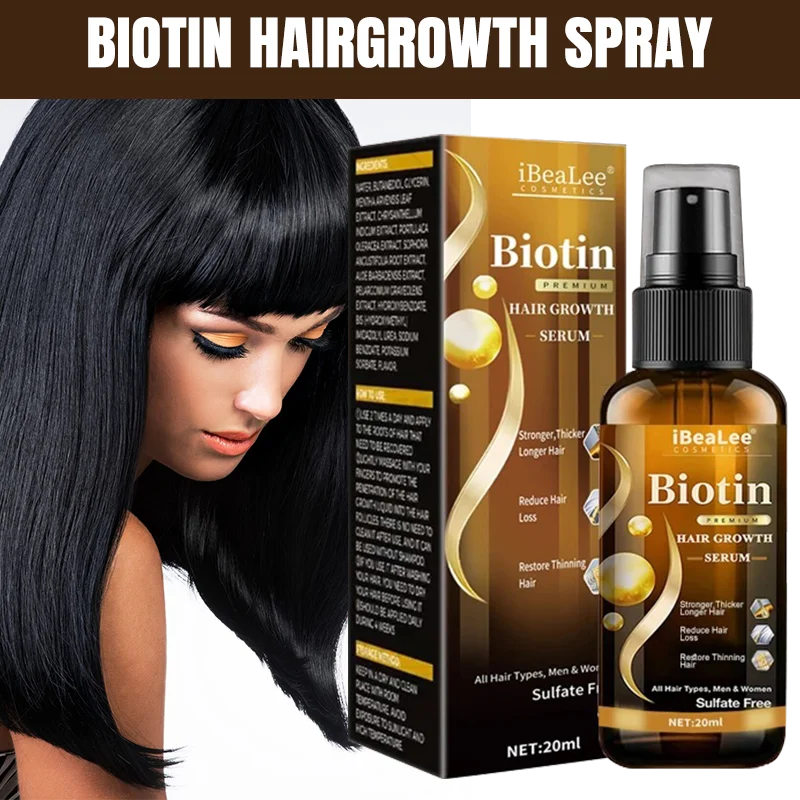 Biotin Hair Spray Anti Hair Loss Treatment Baldness Repair Beard Eyelash Fast Growth Serum Dense Thicker Regrowth Hair Care