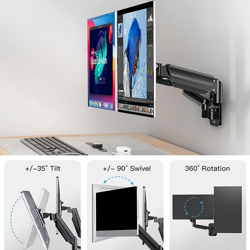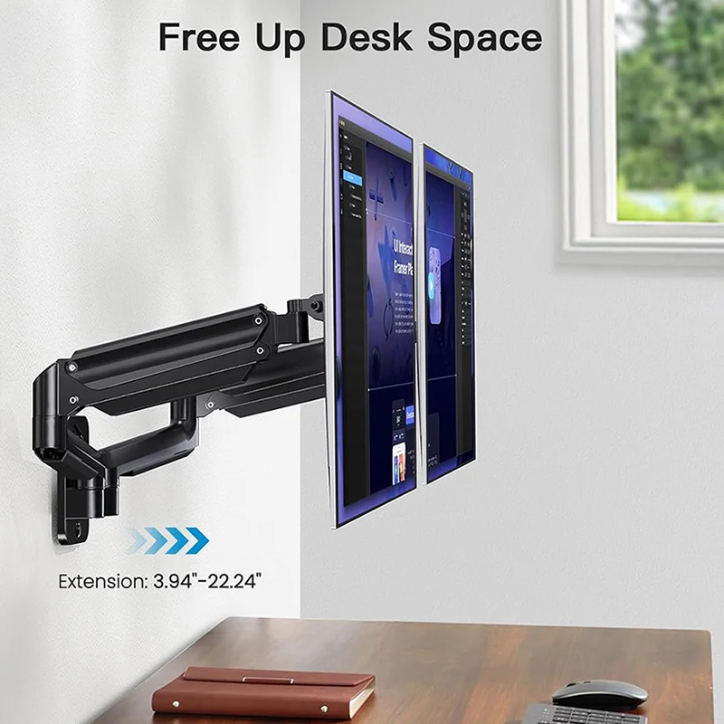 Wall mounted dual screen air pressure arm monitor wall bracket dual arm computer bracket single screen adjustable rotatable brac
