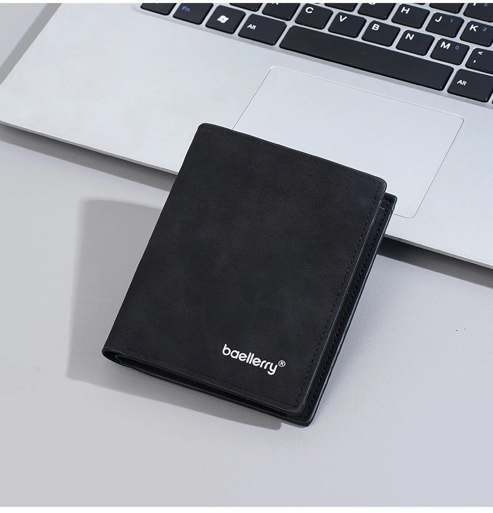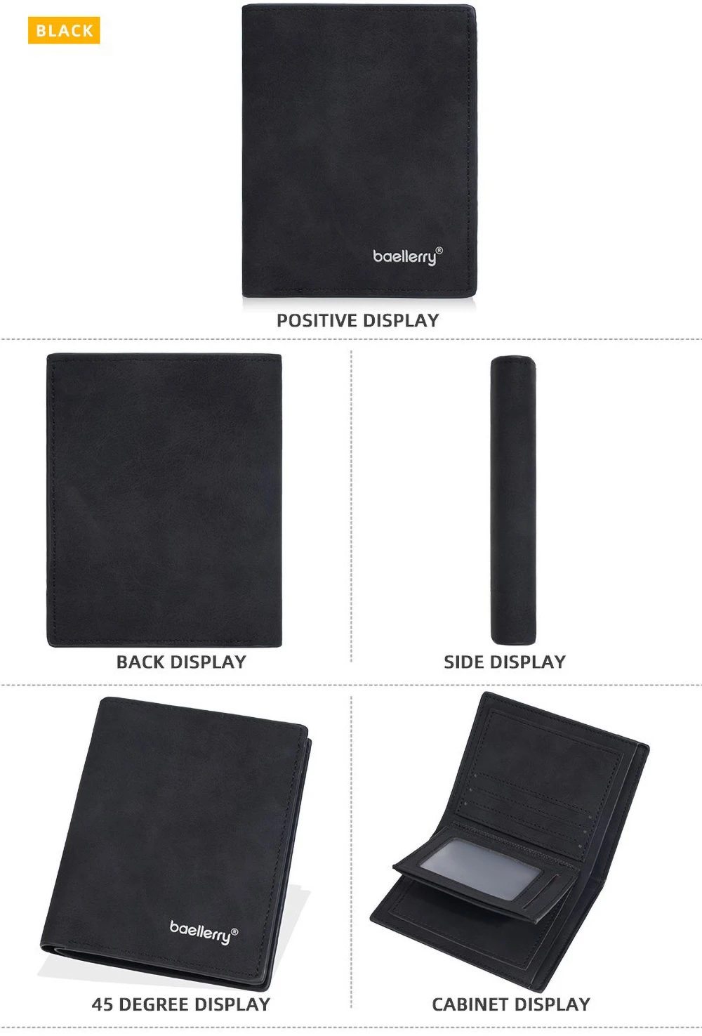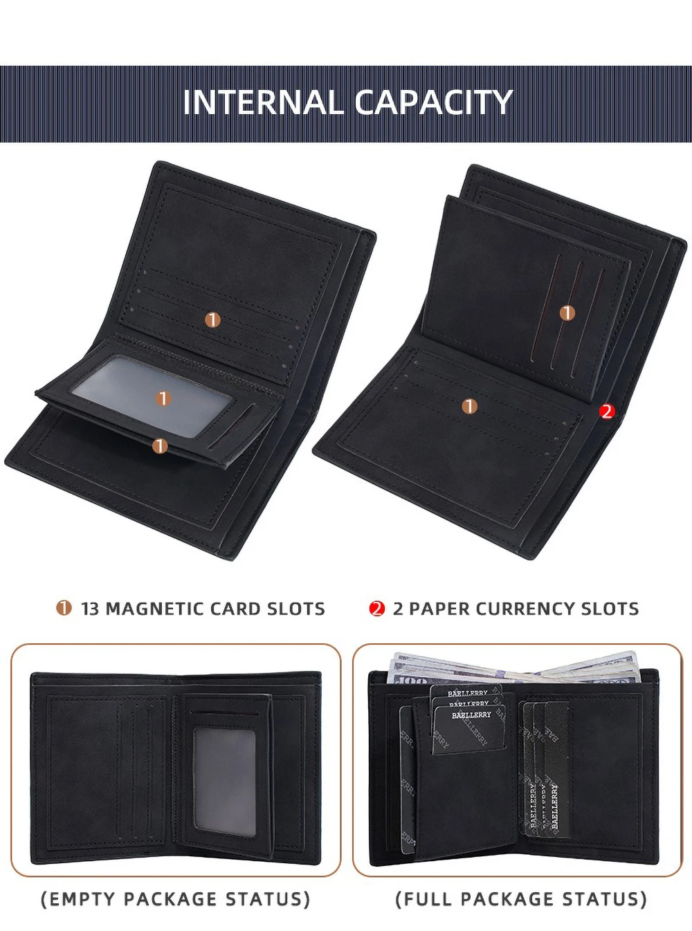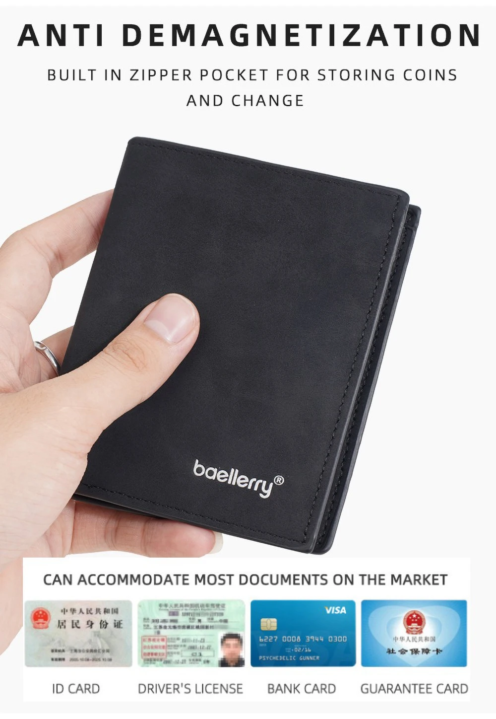 Baellerry Men's Engraved Short Wallet Premium Faux Leather 12-Slot Zipper Organizer Gift Box