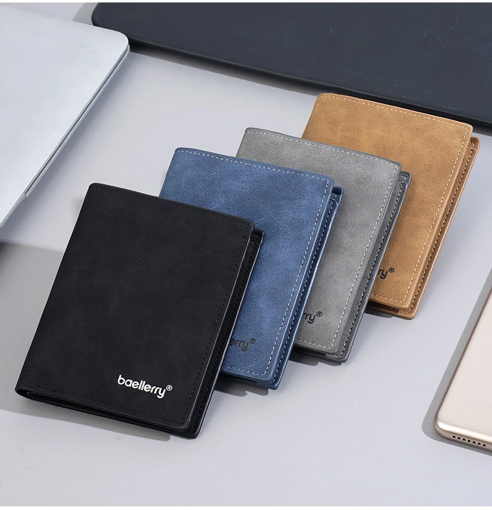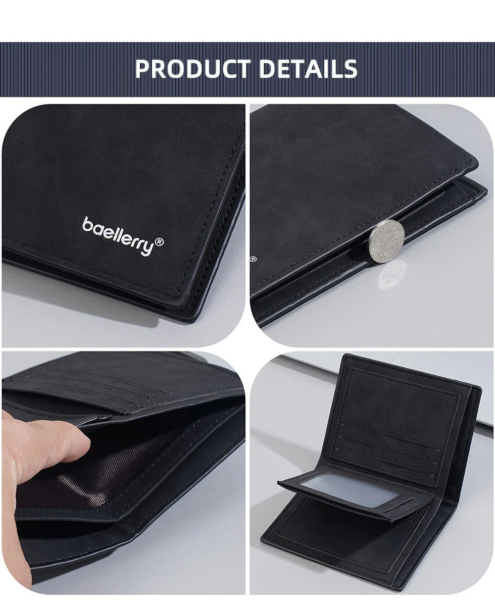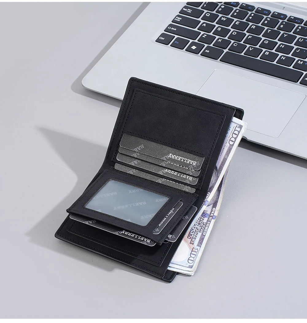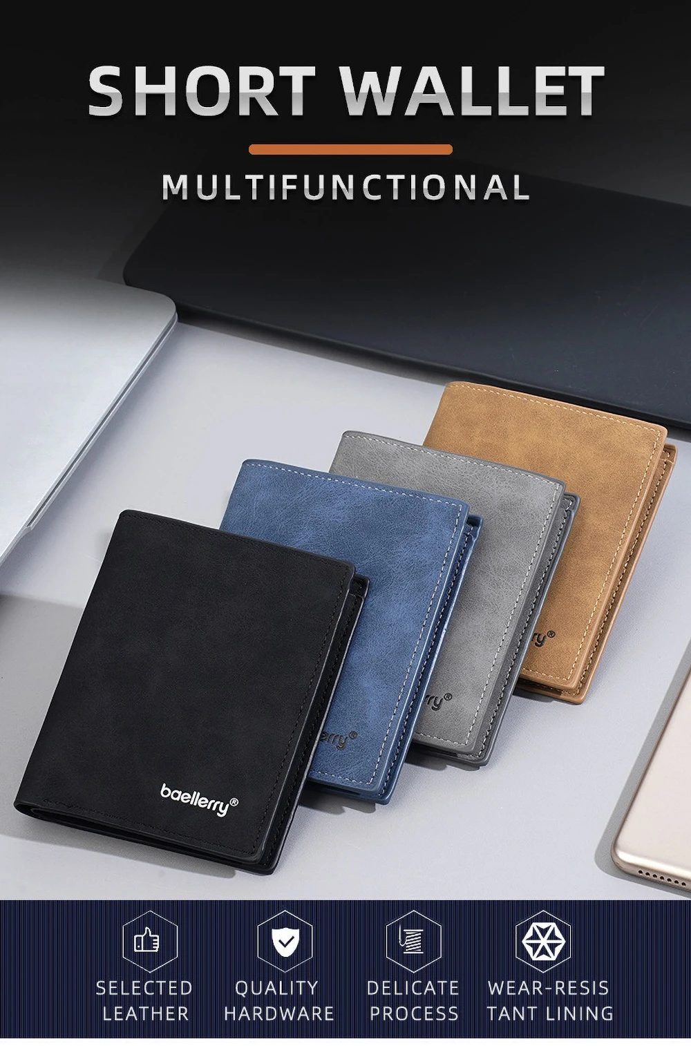 Baellerry Men's Engraved Short Wallet Premium Faux Leather 12-Slot Zipper Organizer Gift Box