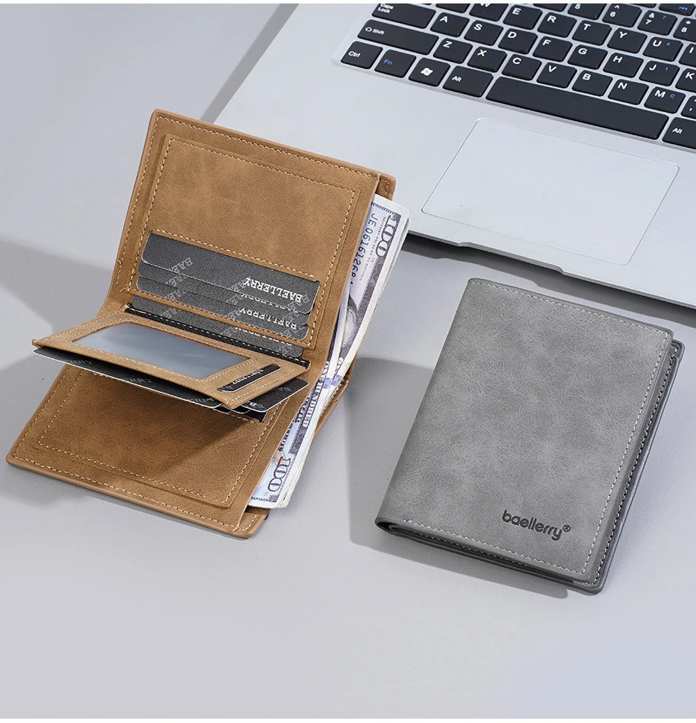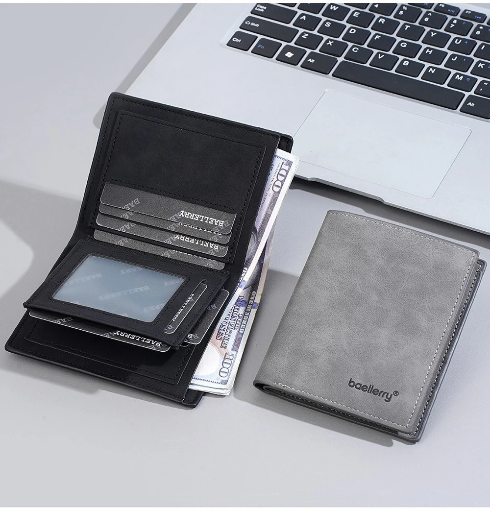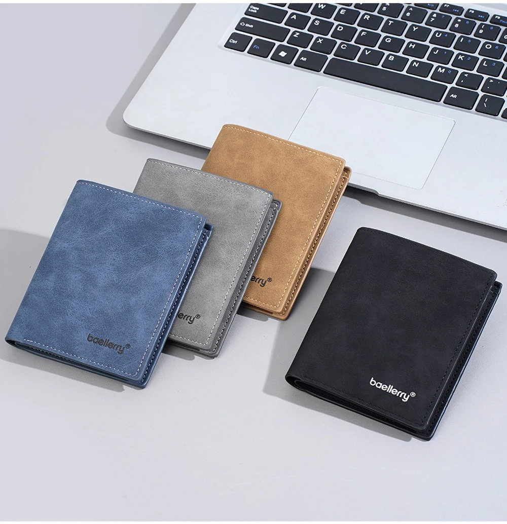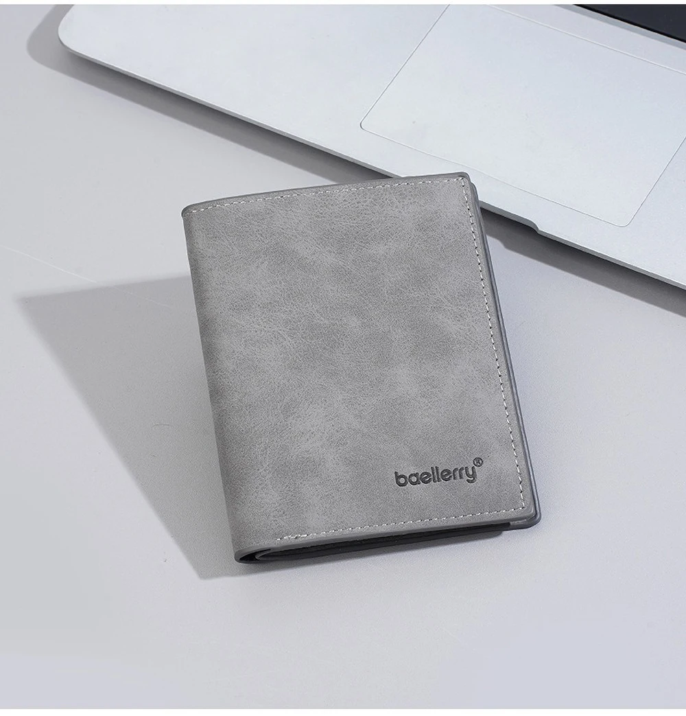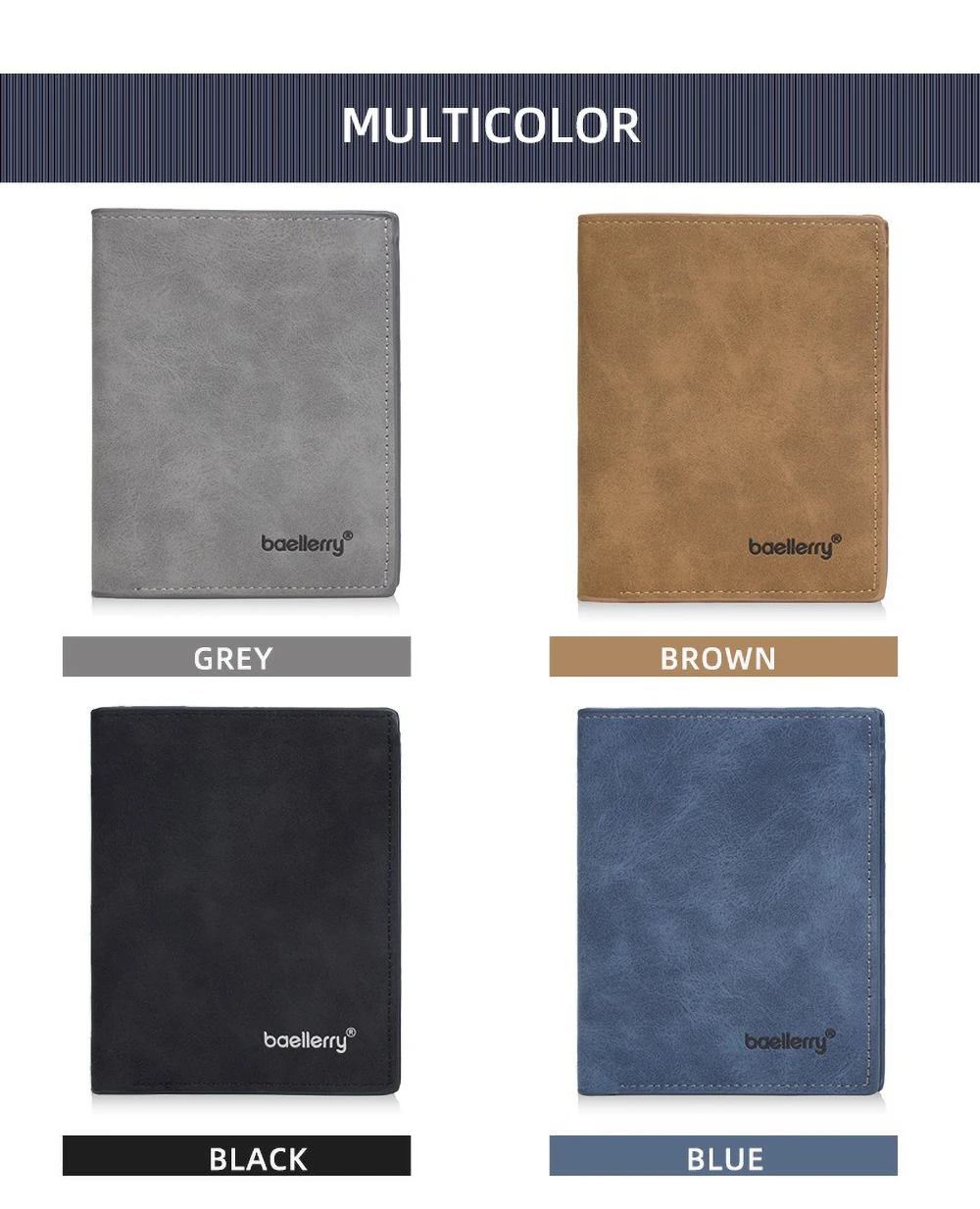 Baellerry Men's Engraved Short Wallet Premium Faux Leather 12-Slot Zipper Organizer Gift Box