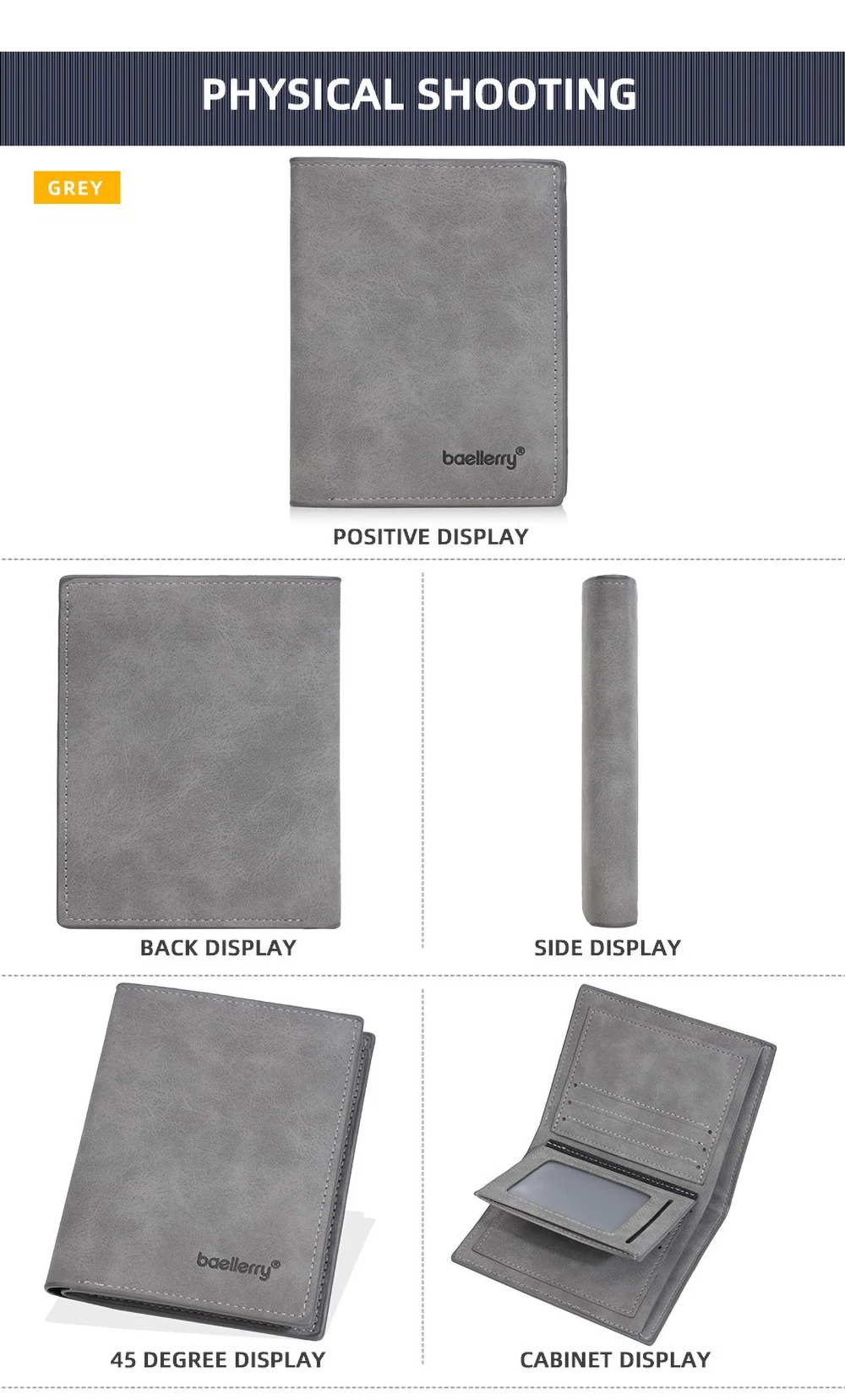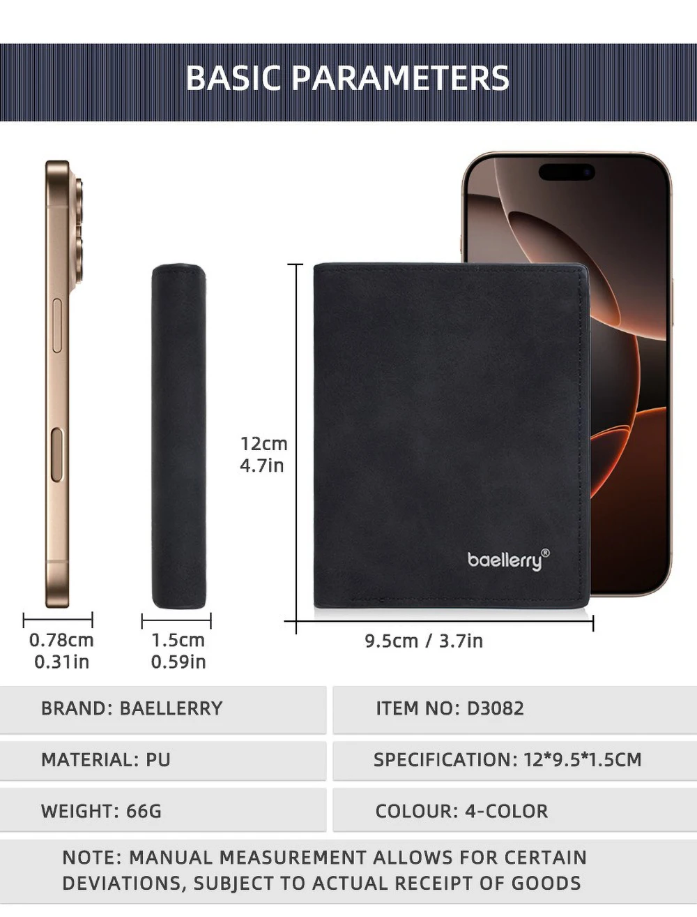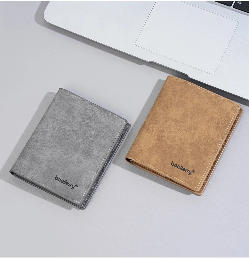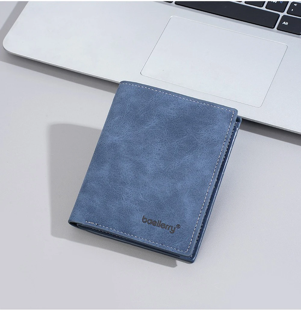 Baellerry Men's Engraved Short Wallet Premium Faux Leather 12-Slot Zipper Organizer Gift Box