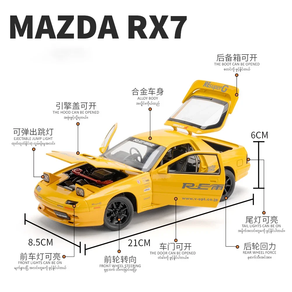 نموذج مازدا FC السوبر للأطفال ، سيارة معدنية ، دييكاست ، مركبات لعبة ، صوت وخفيف ، هدايا ، مازدا RX7