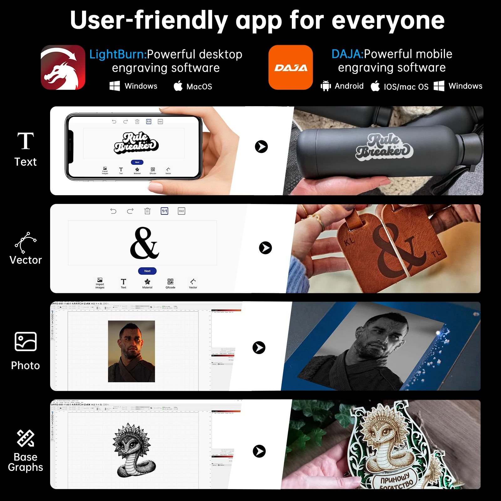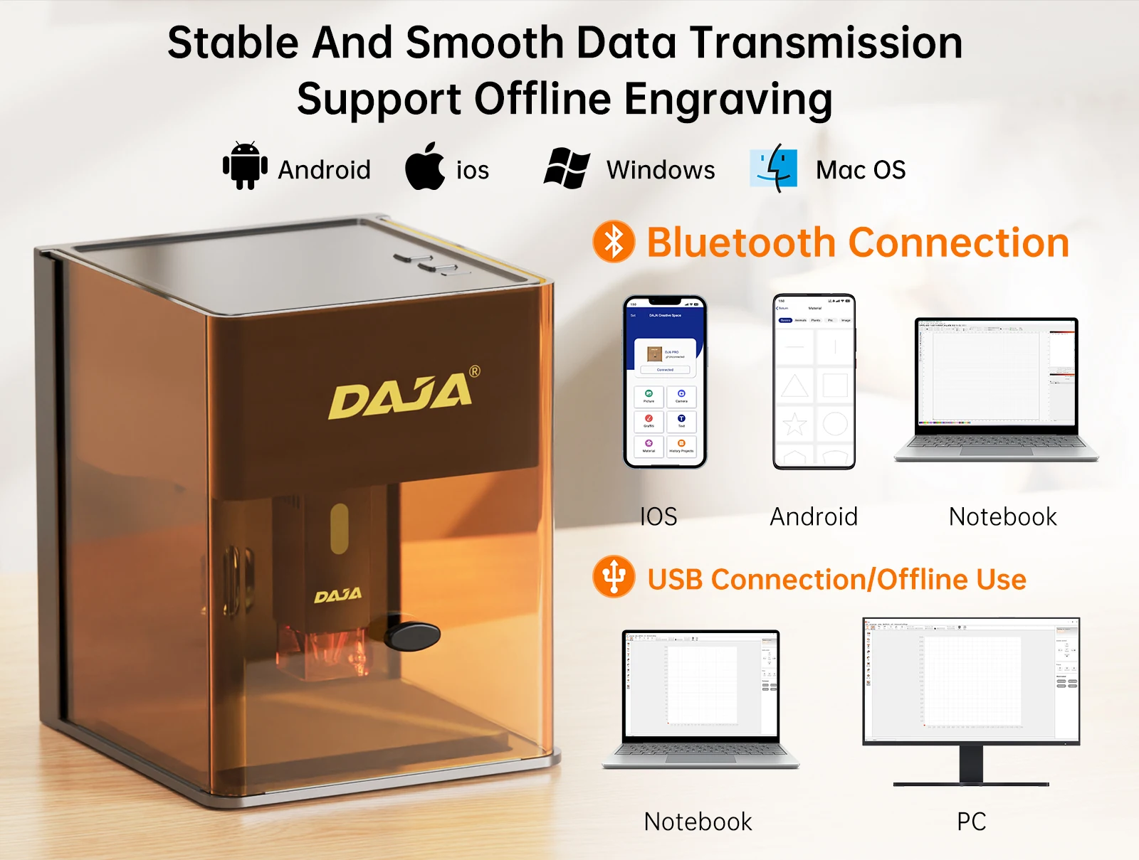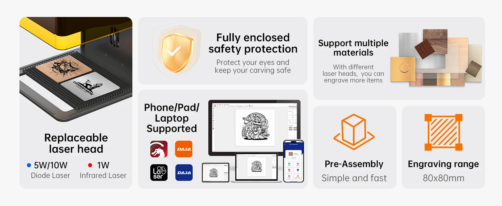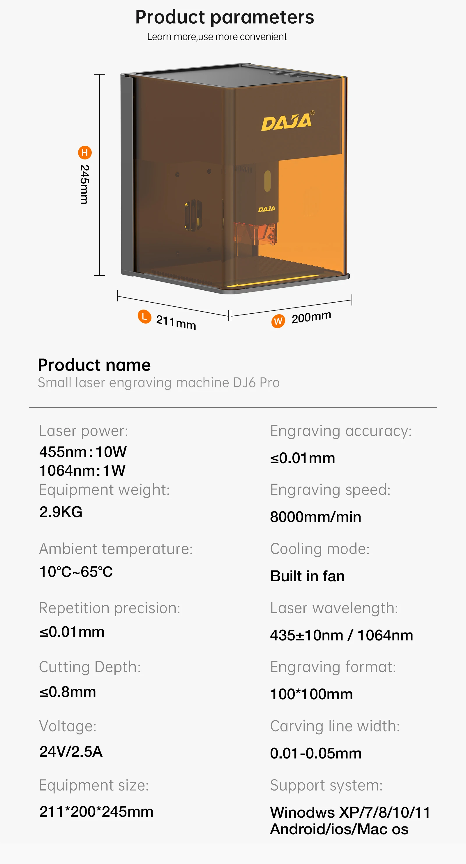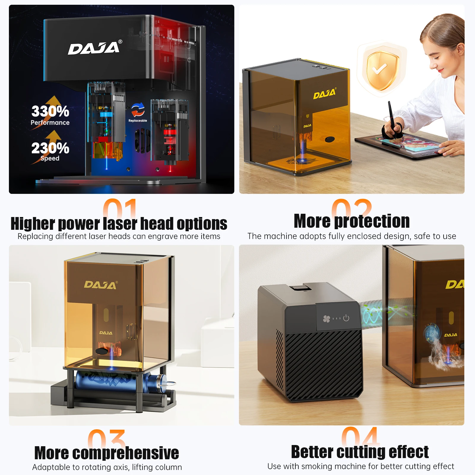 DAJA DJ6 Pro حفارة بالليزر غطاء أمان محمول قطع آلة نقش الأعمال للمجوهرات المعدنية والخشب والزجاج والأكريليك والجلد