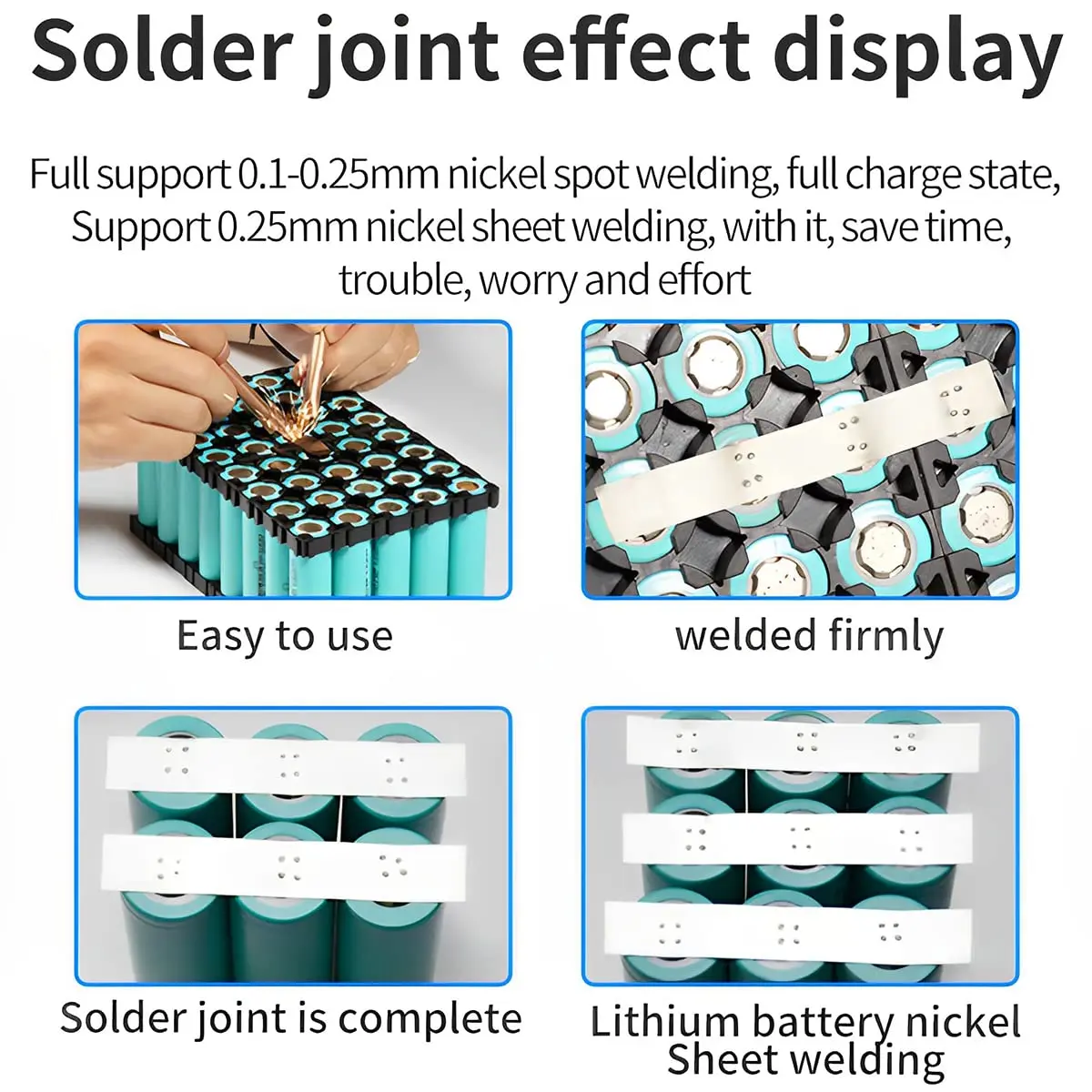 ✅【مجموعة واسعة من الاستخدامات】تُستخدم ماكينة لحام البقعة هذه بشكل أساسي في لحام صفائح النيكل من البطاريات الأسطوانية، وبطاريات النيكل والهيدروجين، وبطاريات النيكل والكادميوم (مثل 18650)