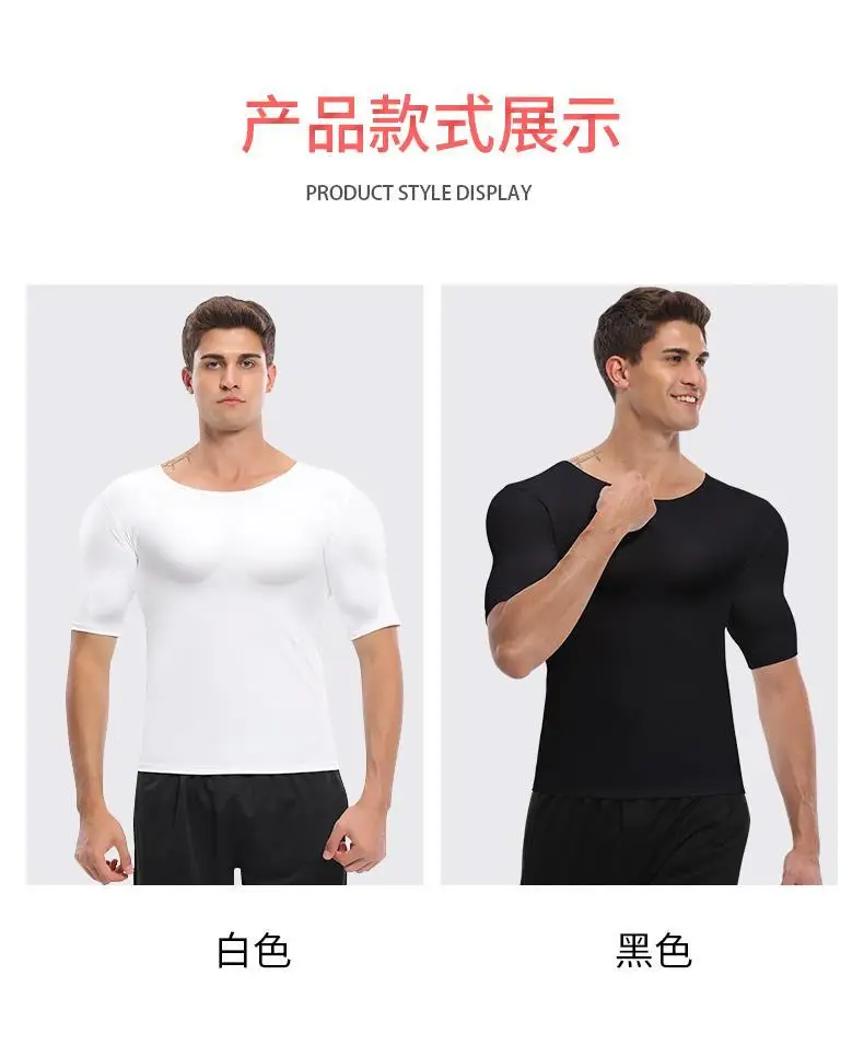 الرجال وهمية العضلات تي شيرت محدد شكل الجسم ABS منصات غير مرئية الصدر القمم حفلة محسن كمال الاجسام اللياقة البدنية العضلات تأثيري الملابس الداخلية