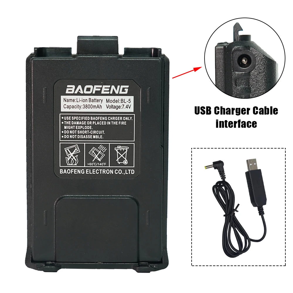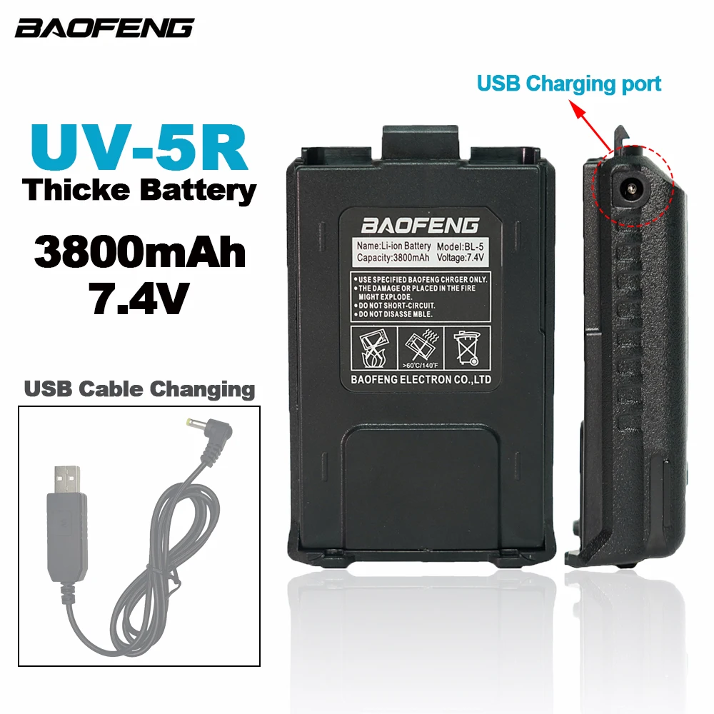 BL-5 Thicke Battery 3800mAh 7.4V For BAOFENG Walkie Talkie UV-5R UV-5RT UV-5RE BF-F8+ BF-F8HP Two Way Radios Parts Extra Battery