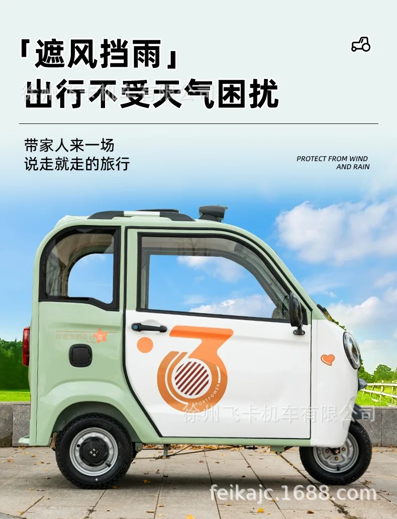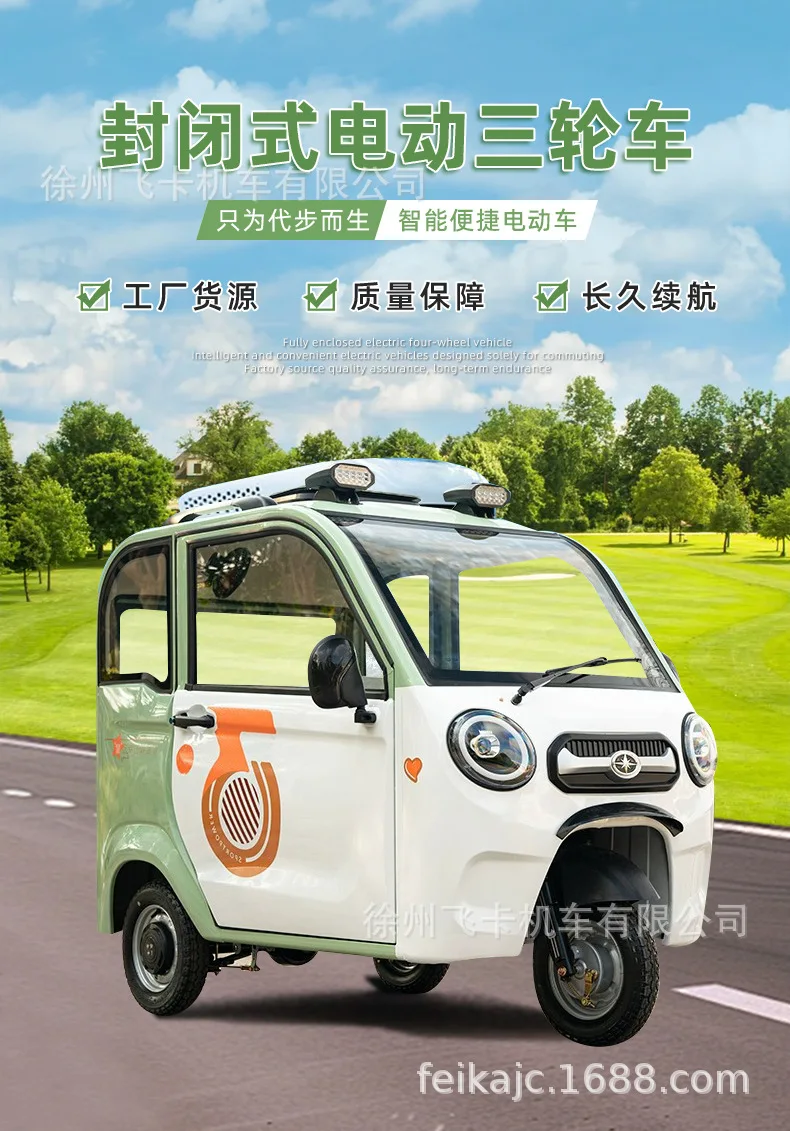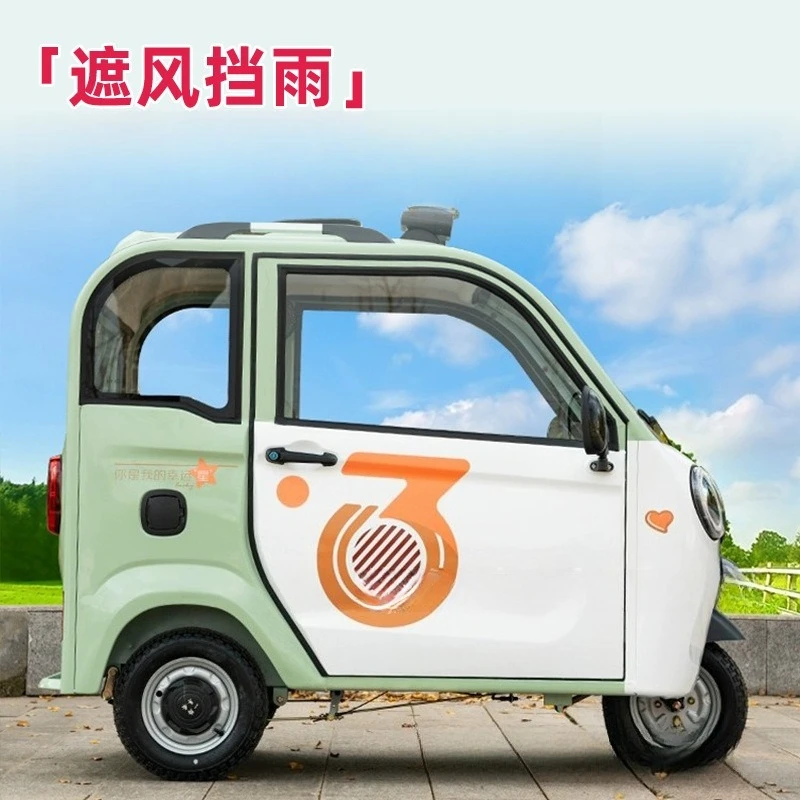 Electric tricycle fully enclosed small household women pick up and drop off children battery car with shed for the elderly