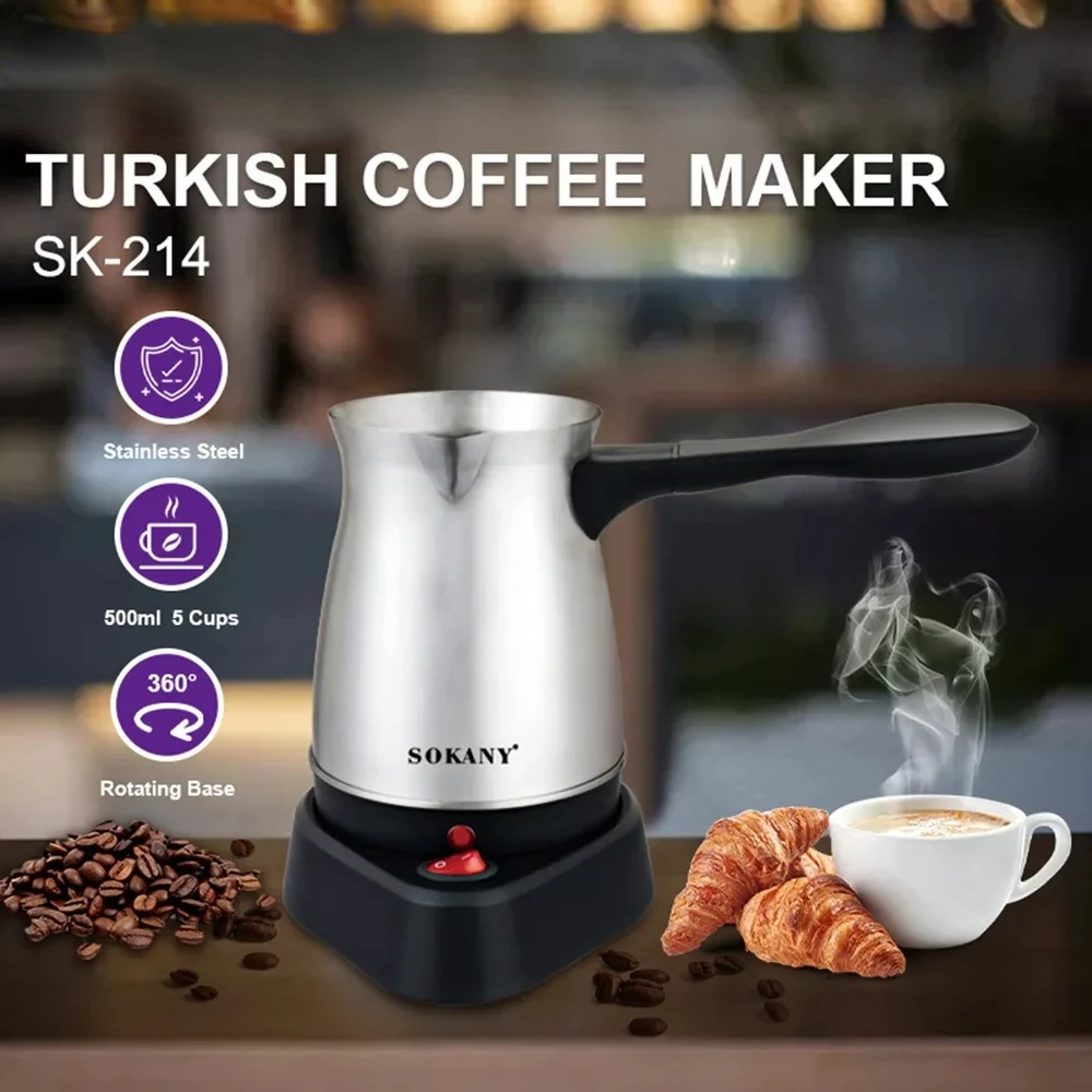ماكينة صنع القهوة التركية اليونانية الكهربائية 220 فولت 5 أكواب، ماكينة من الفولاذ المقاوم للصدأ، وعاء موكا