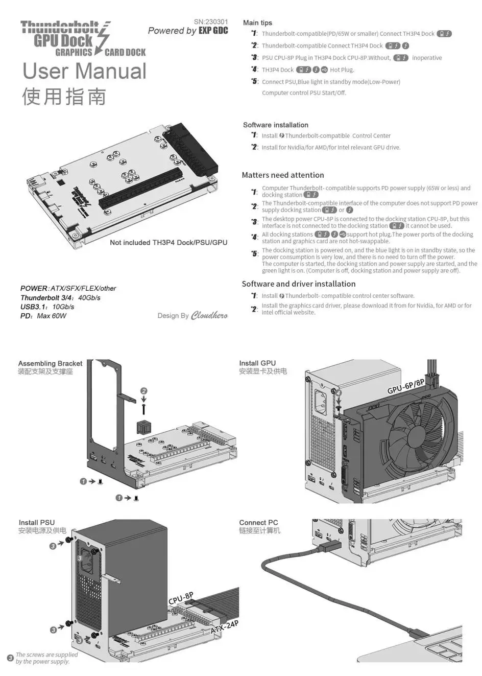 يتم استخدام قاعدة التوصيل المتوافقة مع TH3P4G3 Thunderbolt لتوصيل الكمبيوتر المحمول بواجهة Thunderbolt4/3 ببطاقة الرسومات الخارجية.ثم يمكن للكمبيوتر المحمول ممارسة الألعاب أو القيام ببعض الأعمال التي تحتاج إلى بطاقة رسومات عالية الأداء.
