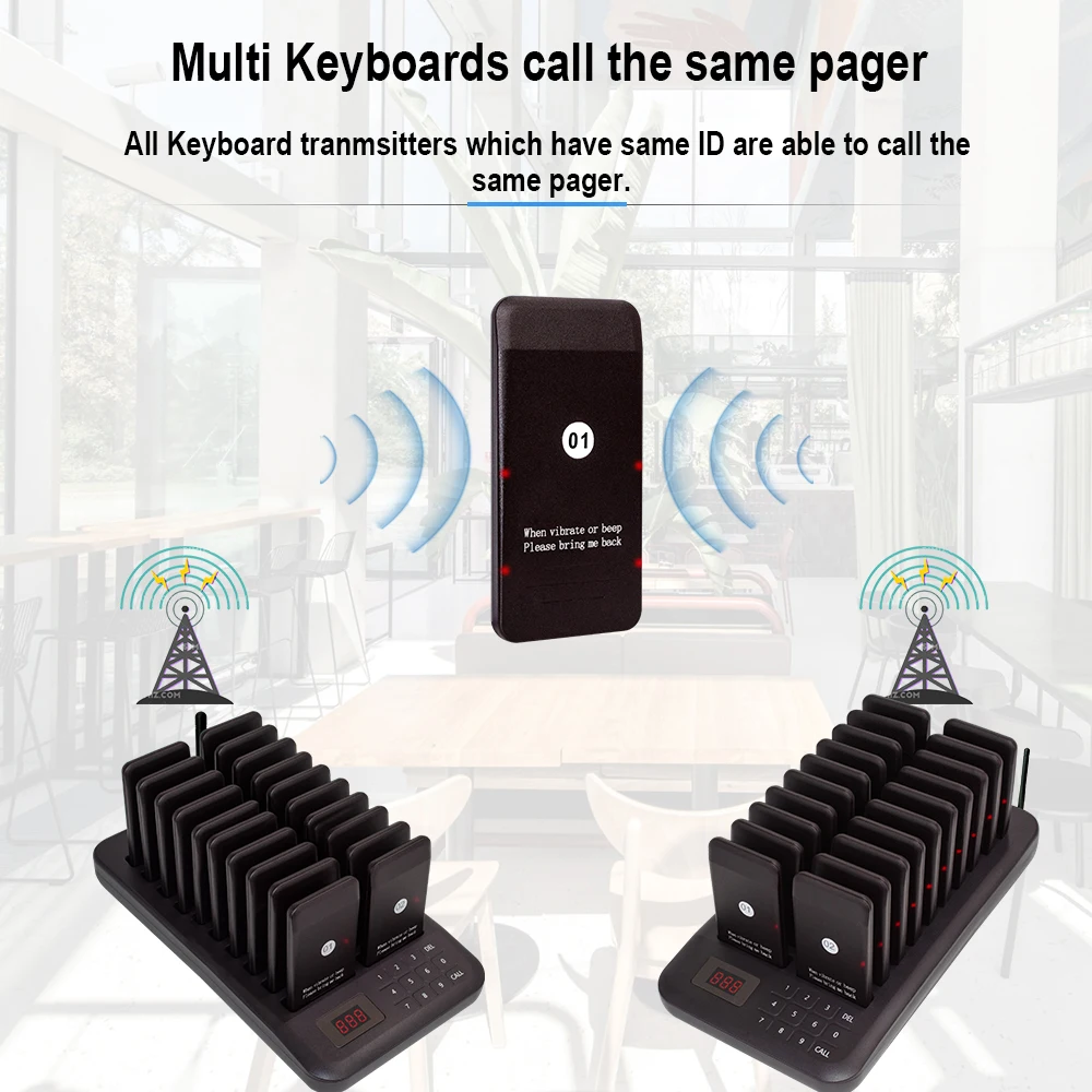 نظام اتصال لاسلكي للمطعم ، جرس الجرس ، 20 جهاز استقبال جهاز إرسال لوحة مفاتيح واحدة ، ترحيل الضيوف ، قاعدة مقهى ، CTP320