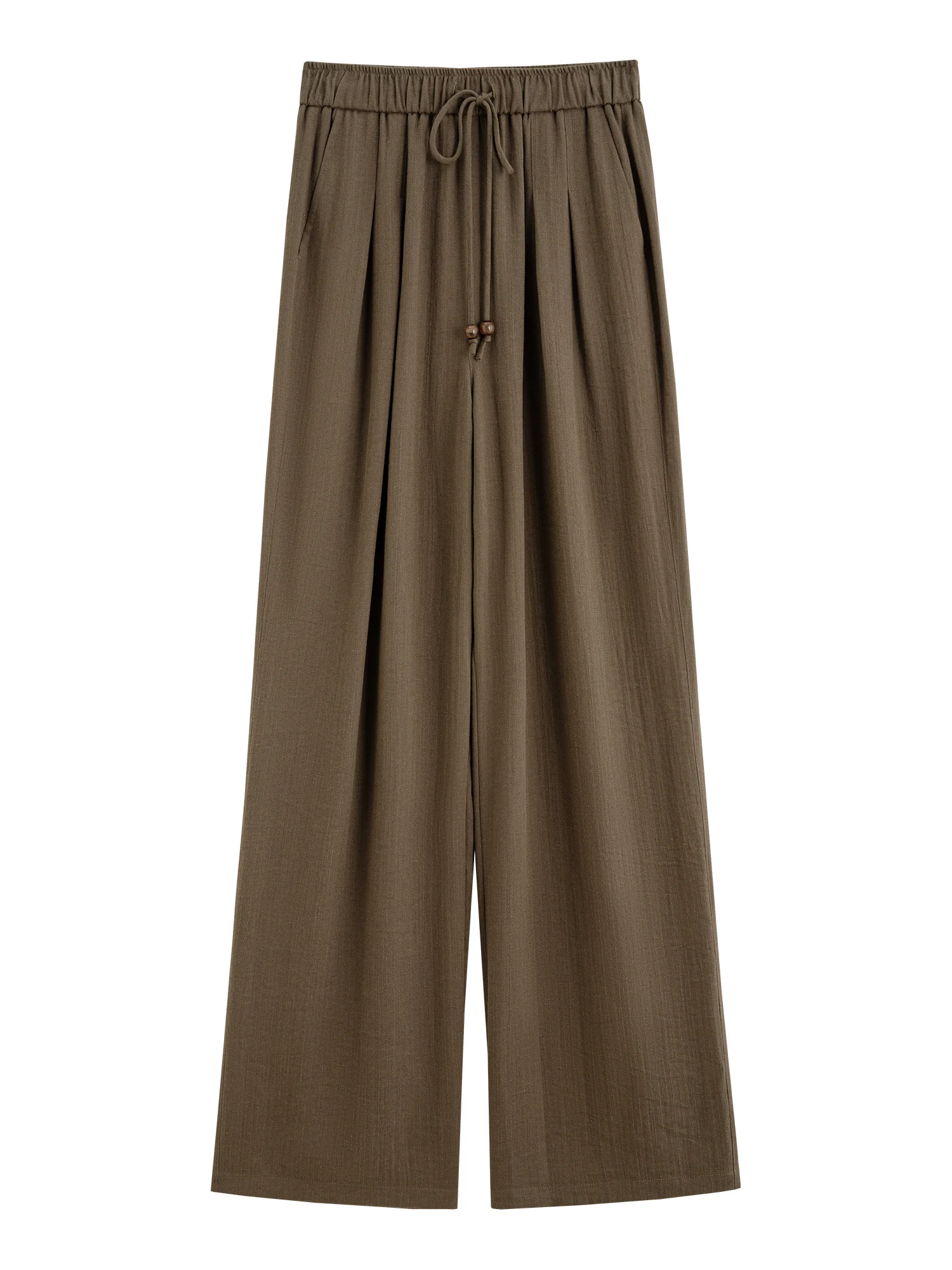 FSLE الحد الأدنى نمط الكتان مستقيم مرونة عالية الخصر سراويل تقليدية للنساء صيف 2025 جديد وصول السراويل فضفاضة 25FS12333