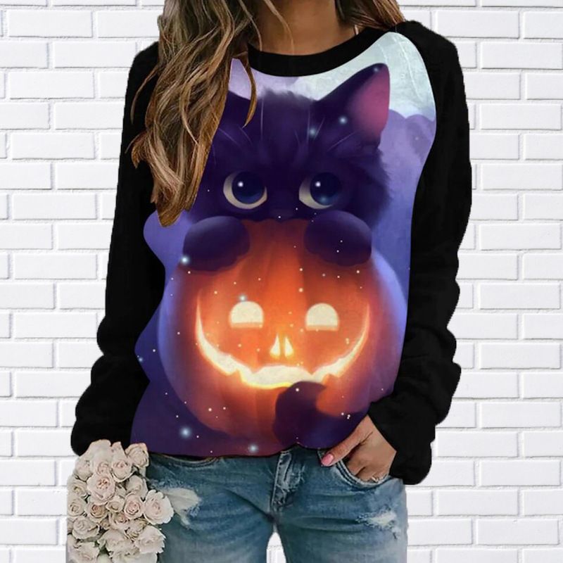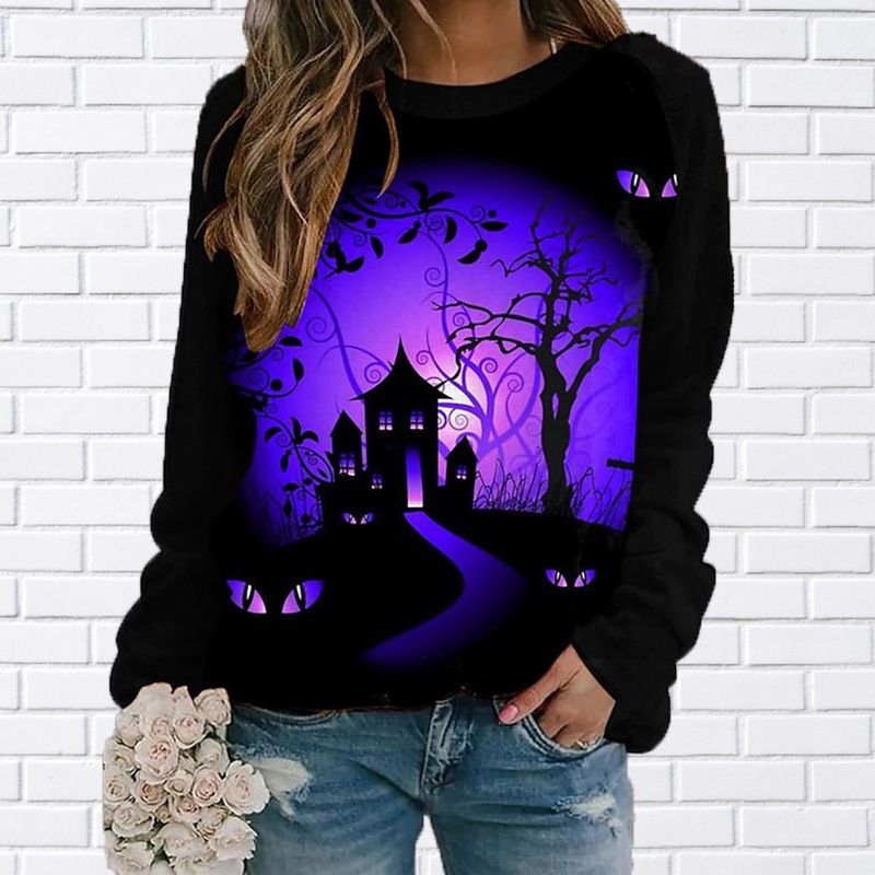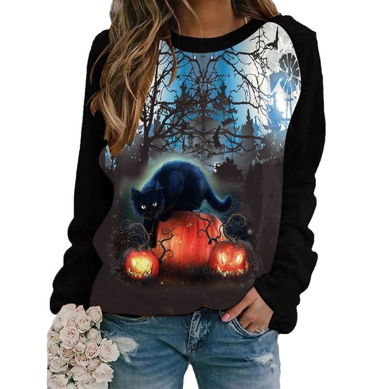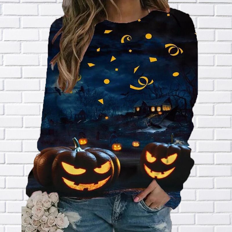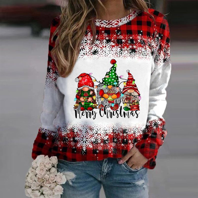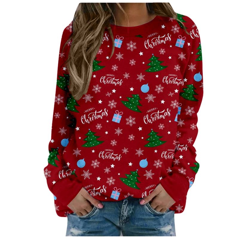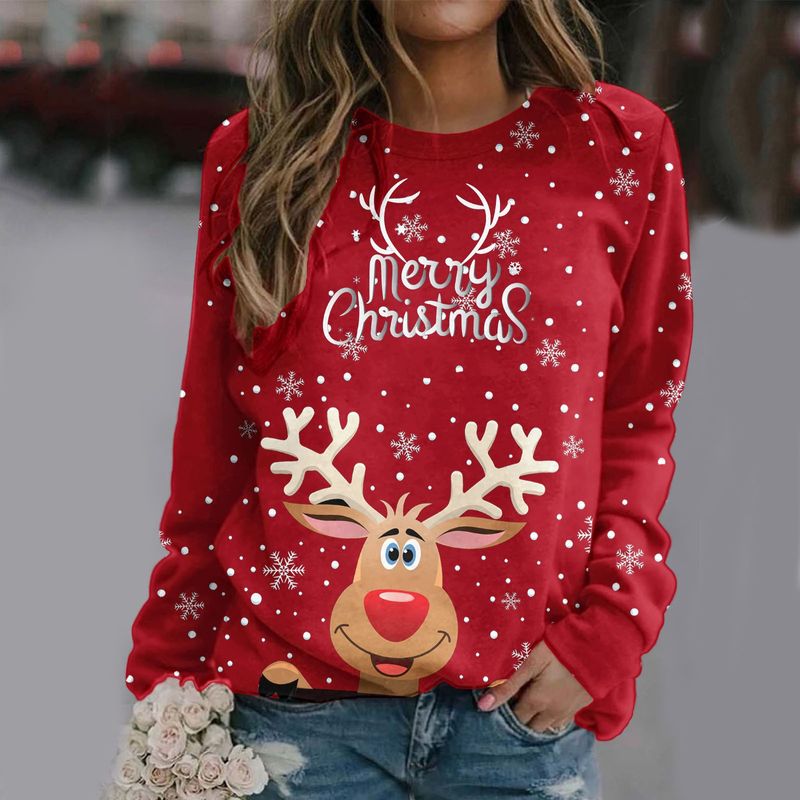 قميص نسائي طويل الأكمام بعنق دائري مطبوع ثلاثي الأبعاد بلون عيد الميلاد المُباع مباشرة للنساء