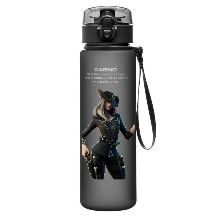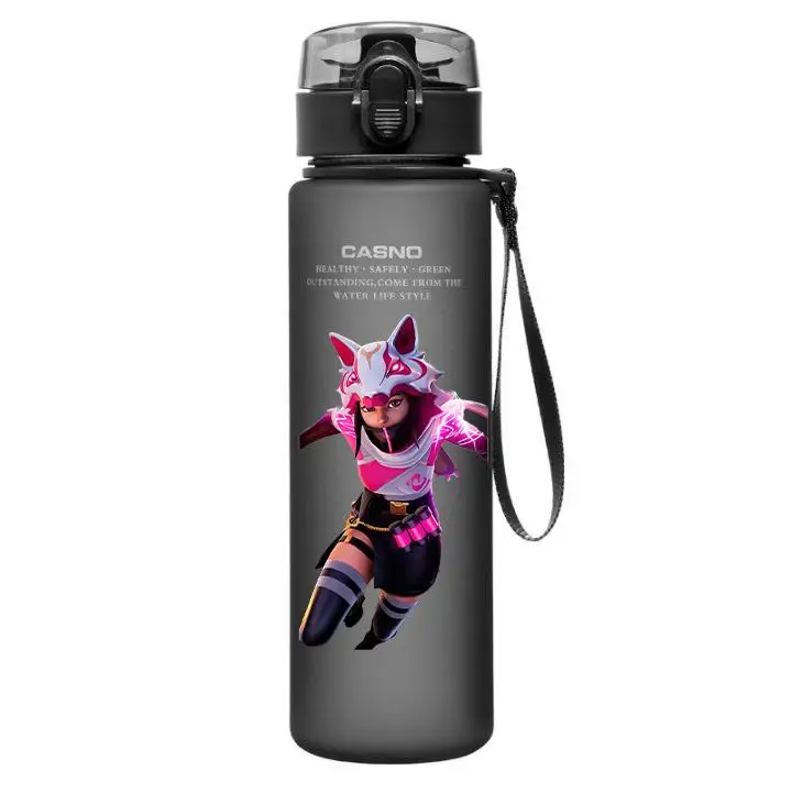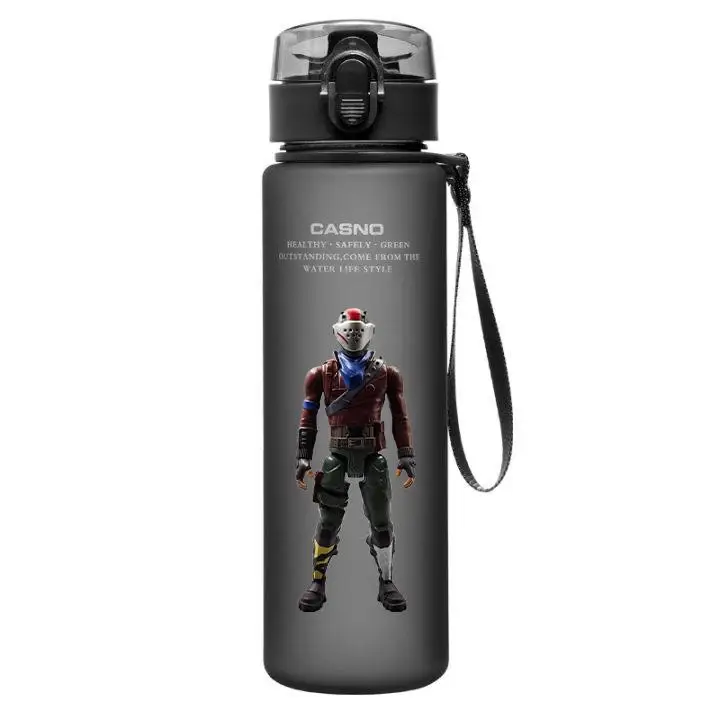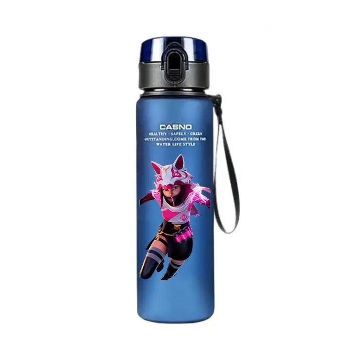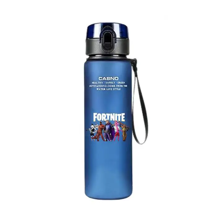 Fortnite أزرق أسود بلاستيك PcLeakProof مقاومة للاستخدام الخارجي 560 مللي سعة كبيرة للتخييم المحمولة السفر كوب ماء رياضي هدايا
