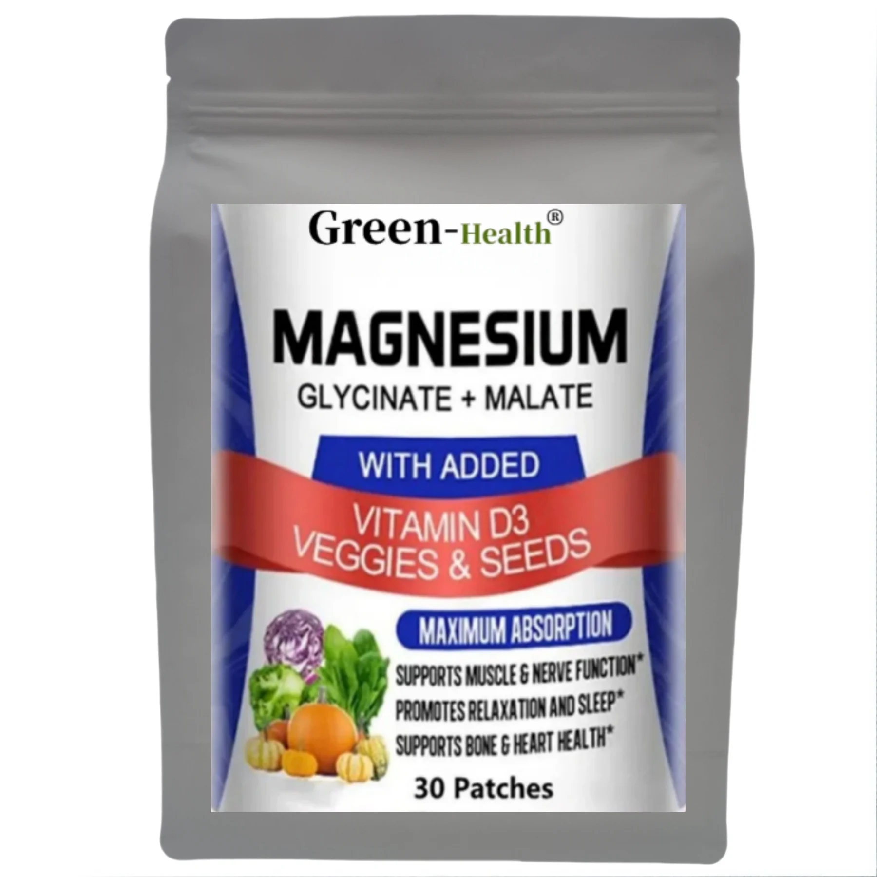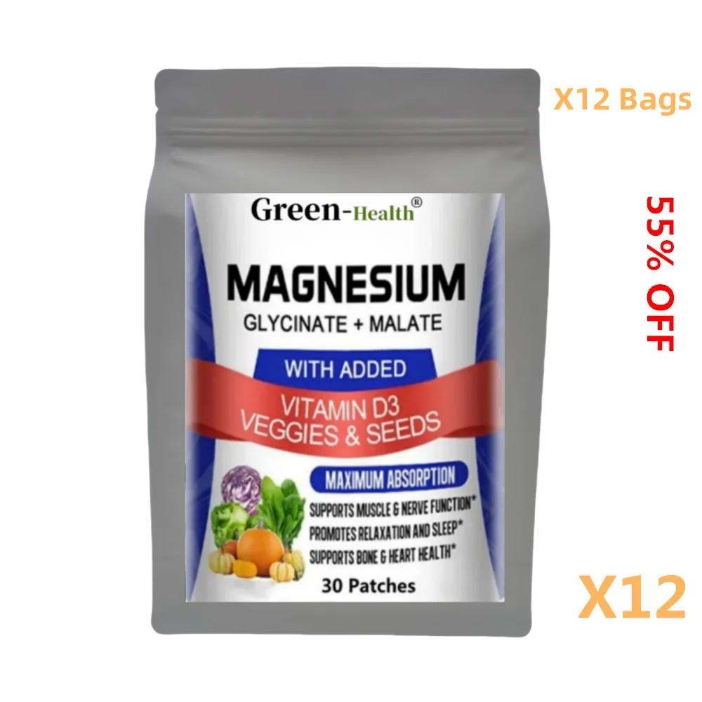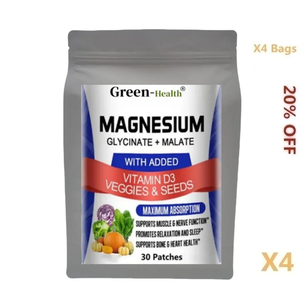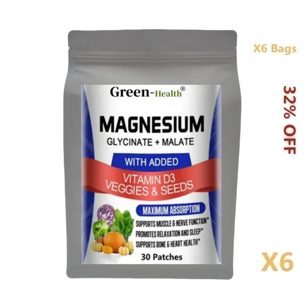 مجمع الجليسينات والمغنيسيوم A5YE مع فيتامين د3 - بقع ماكس الامتصاص للعظام والقلب والنوم والأعصاب - 30 رقعة