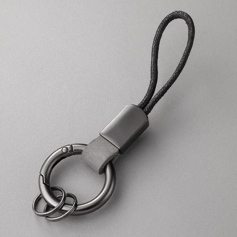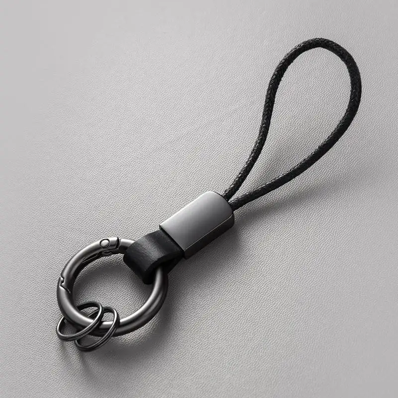 سلسلة مفاتيح من الجلد الطبيعي للرجال والنساء سلسلة مفاتيح للسيارة حبل قطني حزام معدني كيرينغ هدية حامل مفاتيح عصري