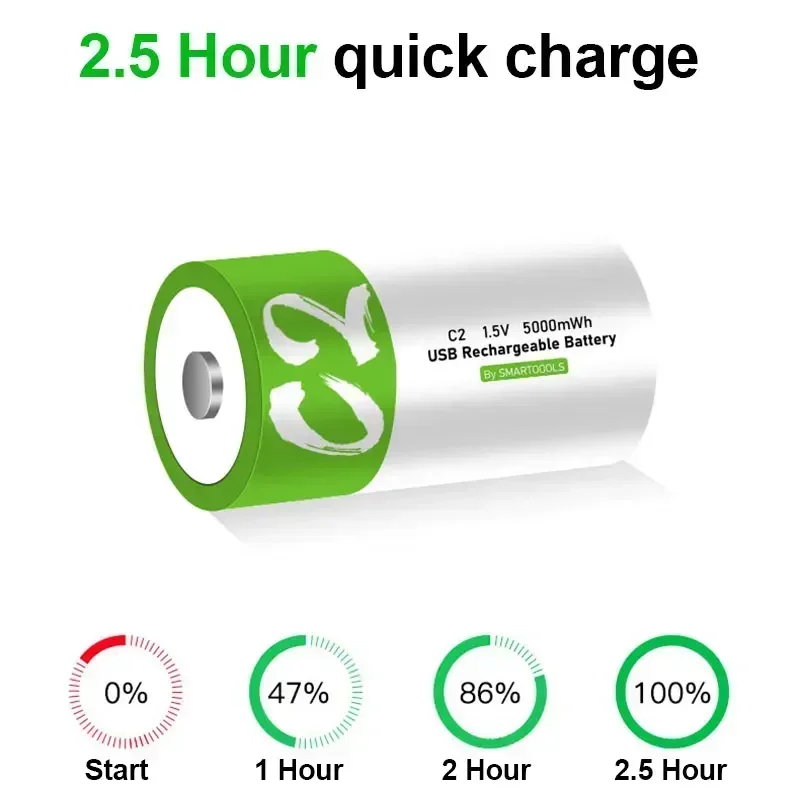 1.5V 5000mWh C Size LR14 Li-po Rechargeable Battery Type-C Ultra-Fast Charging for Flashlight Gas Cooker Electronic Piano Radios