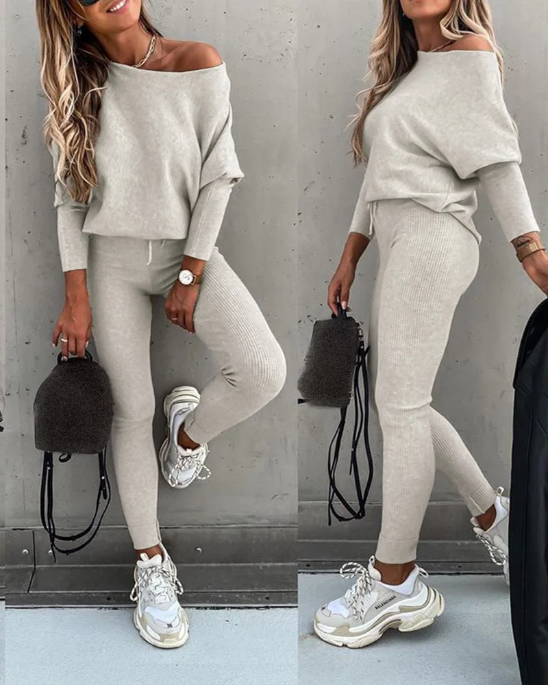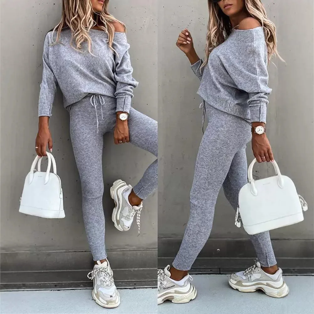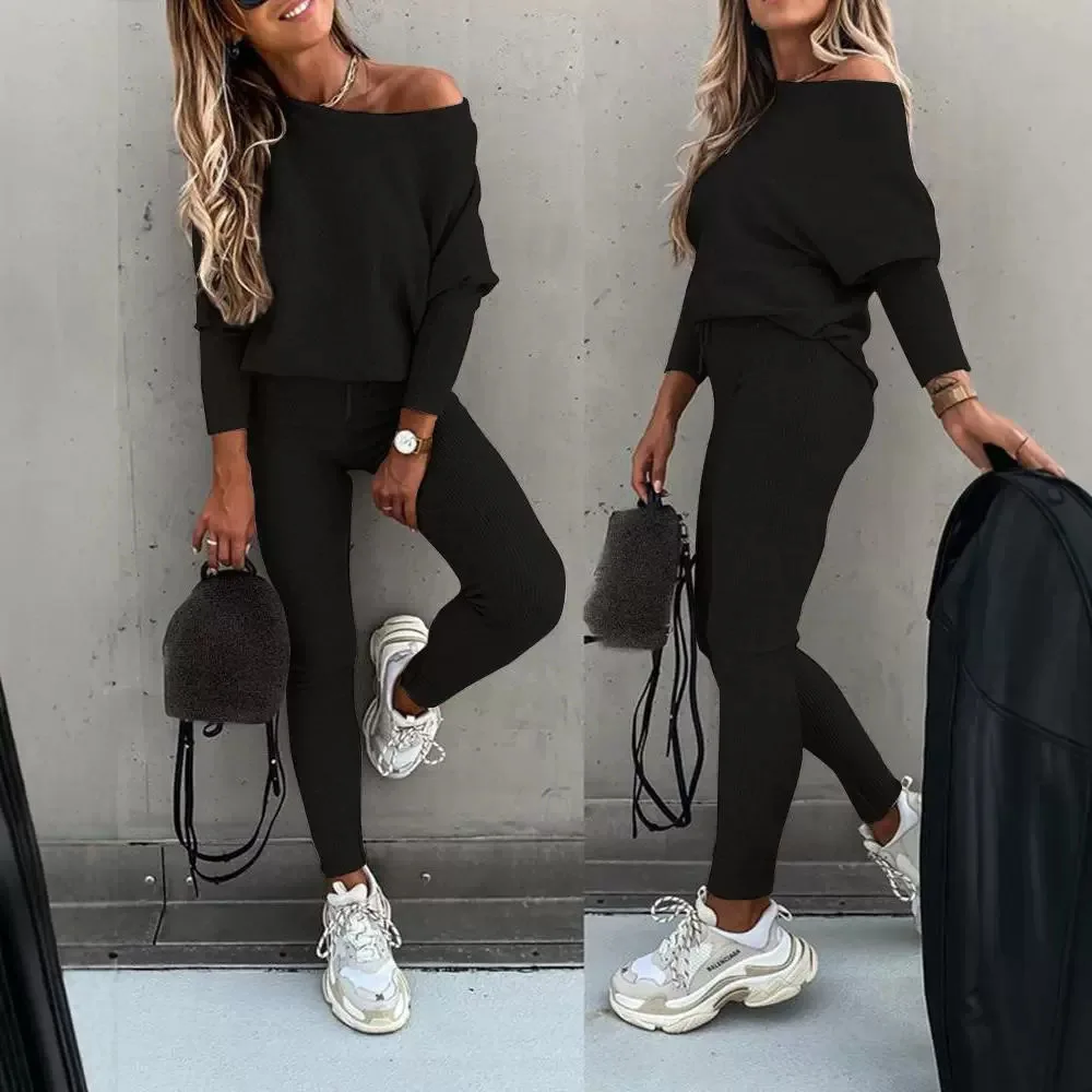 طقم بنطال نسائي مكشوف الكتفين بأكمام كاملة بقصة ضيقة وبنطال طويل ، غمد ، كاجوال ، أنيق ، لصق ، مثير ، خريف ، 2