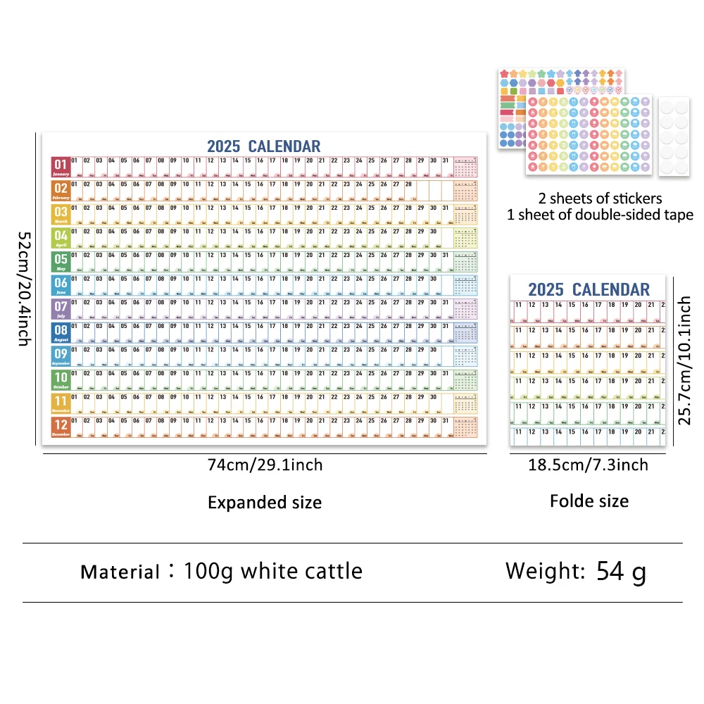 1 قطعة 2025 تقويم حائط ورقي كبير الحجم ملون مع ملصقات وأشرطة 365 يومًا لجدول مذكرة مخطط العام