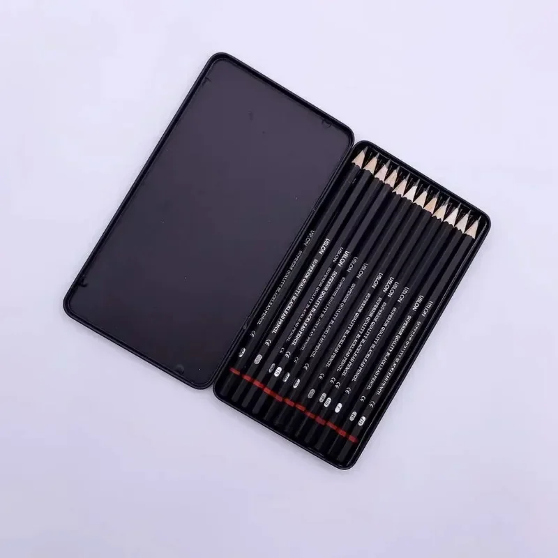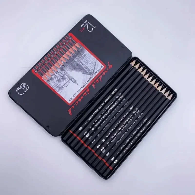 12 قطعة/المجموعة رسم قلم رصاص صندوق معدني مشحذ مسبقًا معبأة 2H-8B الجرافيت مجموعة أقلام رصاص للمدرسة مكتب القرطاسية لوازم الرسم الفني