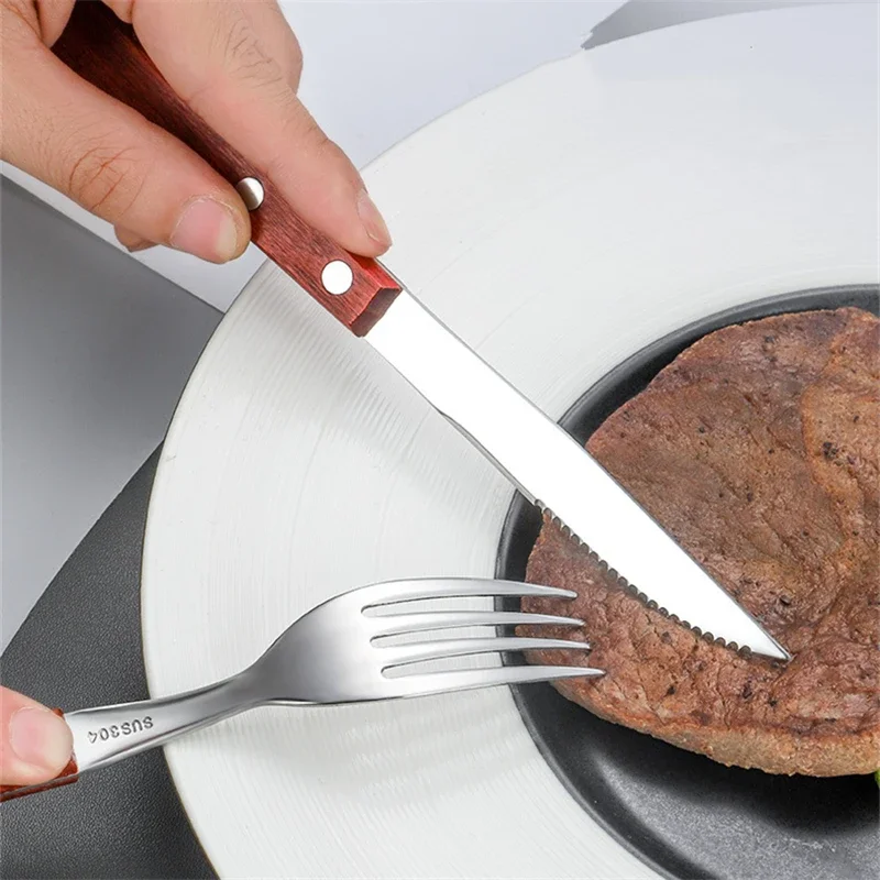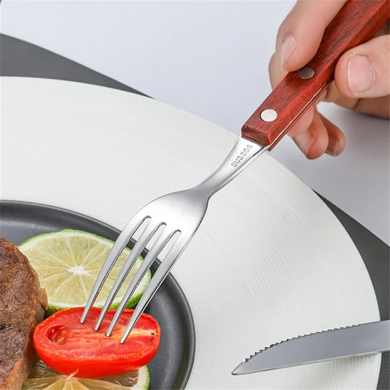 أدوات مائدة من الفولاذ المقاوم للصدأ قابلة لإعادة الاستخدام مجموعة محمولة مرآة فضيات مقبض خشبي سكين شوكة ملعقة المطبخ المنزلي شوكة أدوات المائدة الغربية